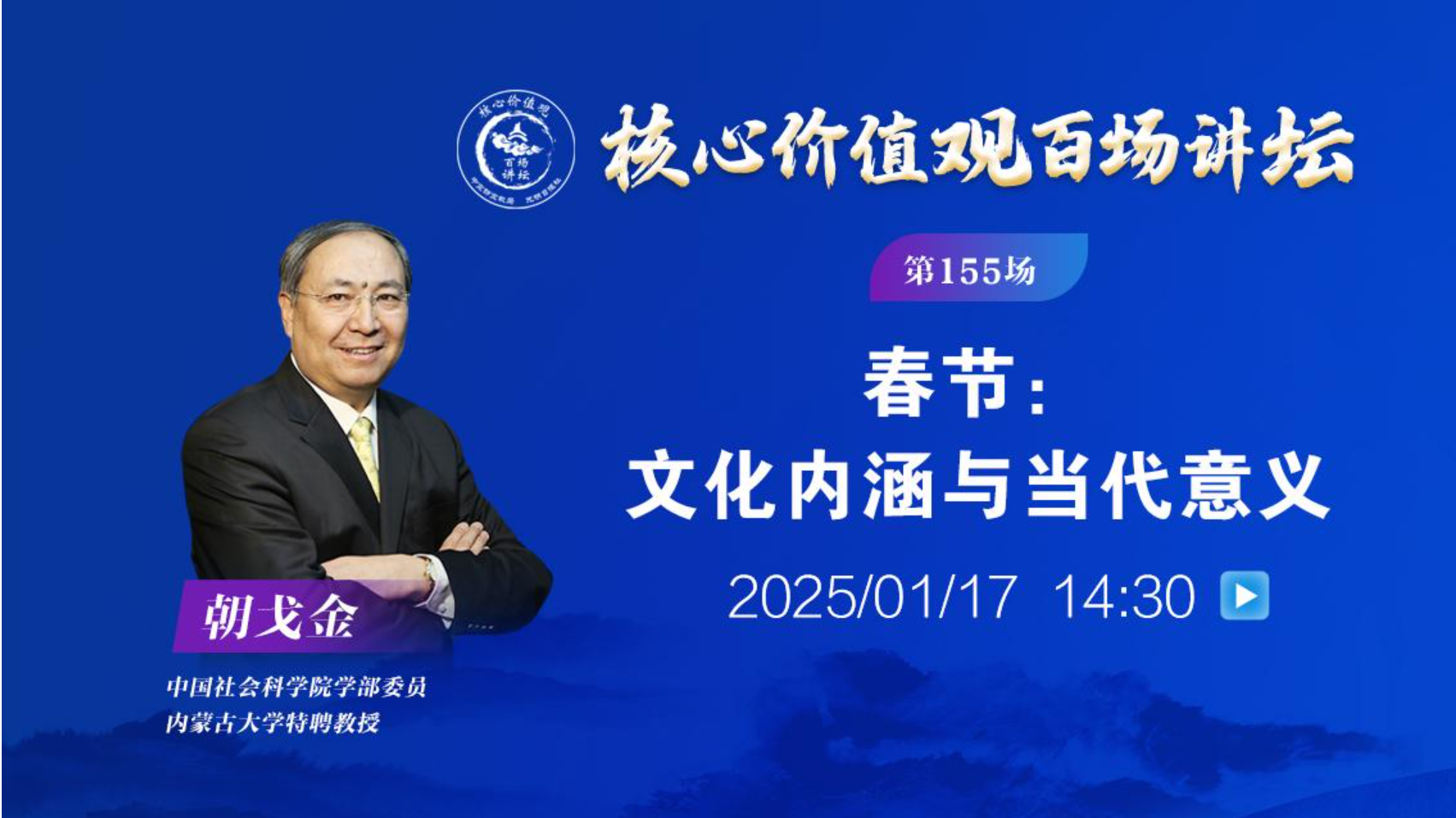 新華社北京1月17日電(記者 孫蕾)由中宣部宣教局、光明日?qǐng)?bào)社共同主辦的“核心價(jià)值觀百場(chǎng)講壇”第155場(chǎng)活動(dòng)1月17日在中國(guó)非物質(zhì)文化遺產(chǎn)館舉行。中國(guó)社會(huì)科學(xué)院學(xué)部委員、內(nèi)蒙古大學(xué)特聘教授朝戈金作題為《春節(jié):文化內(nèi)涵與當(dāng)代意義》的演講。