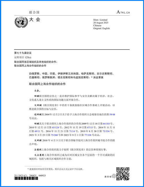 新華社聯合國9月5日電 第79屆聯合國大會5日高票通過中國主提的“聯合國同上海合作組織的合作”決議。包括上合組織所有成員國在內的近40國參與共提。