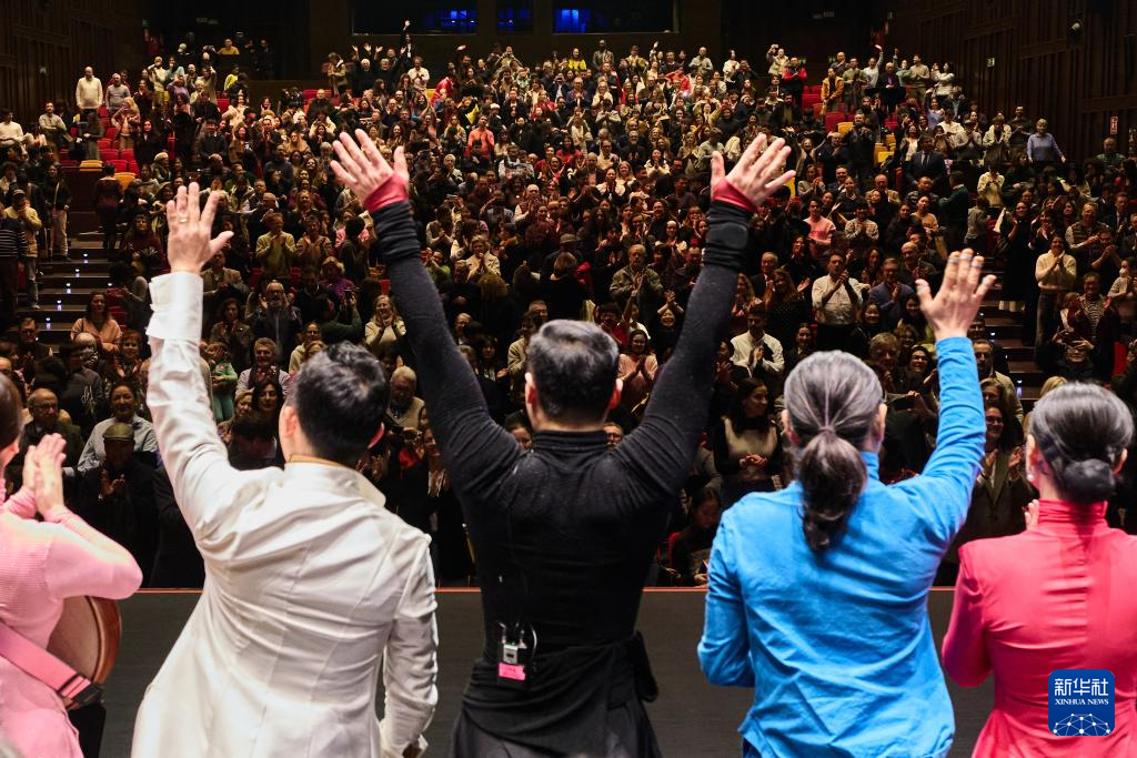 2月2日,在西班牙塞維利亞,上海民族樂團成員在《中國色》音樂會后謝幕。新華社記者 孟鼎博 攝