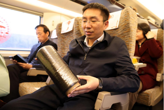 不遠處的同行代表手中,一段銀灰色的材料引人注目——這是一根T1000級高性能碳纖維。帶它進京的是全國人大代表童明全,作為華陽集團科技管理部部長,長期在山西本土企業(yè)從事新材料技術(shù)研發(fā)工作。