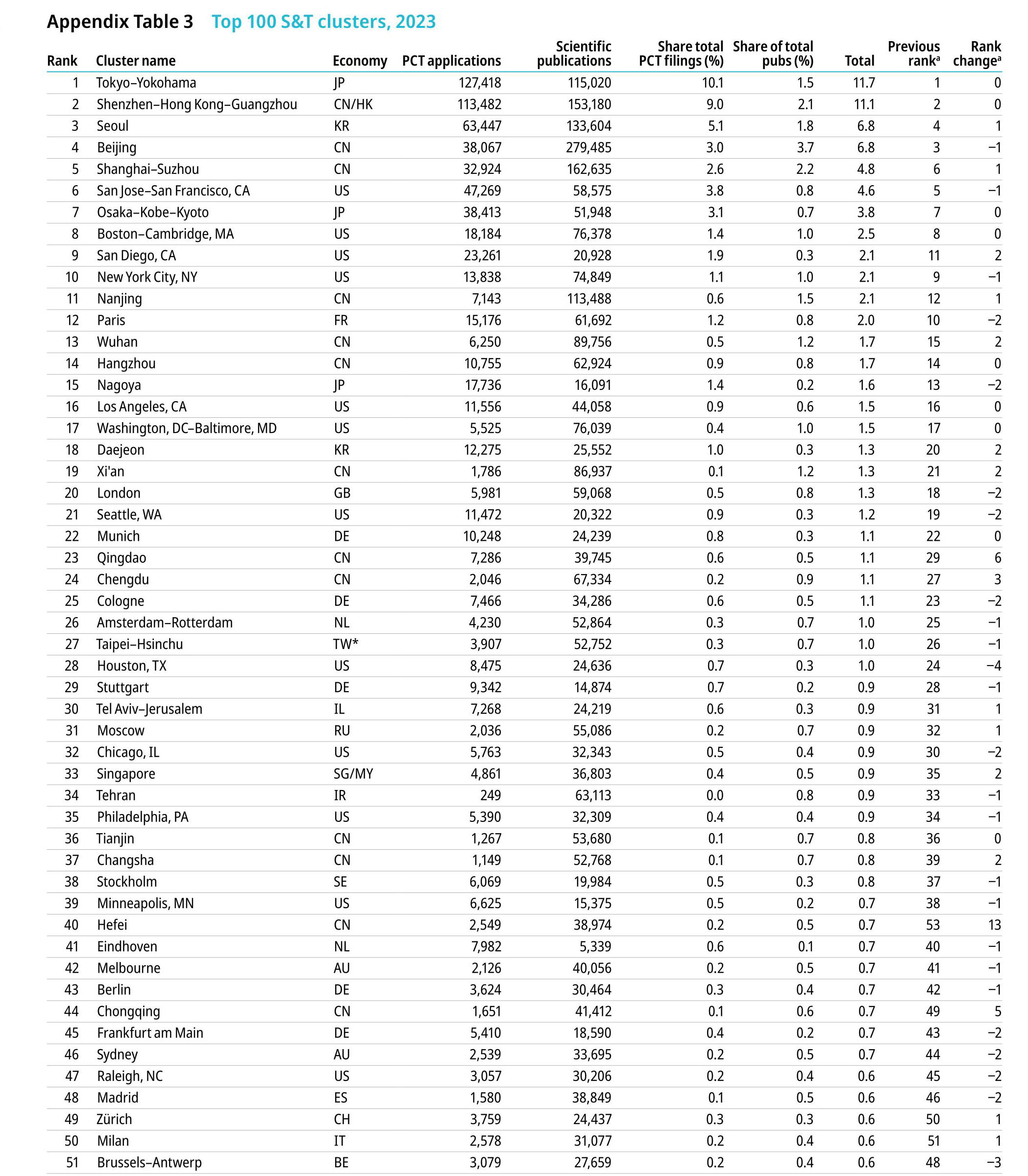 在GII的專題摘錄全球科技集群中,今年呈現出全球科技活動中心東移的特點。全球五大頂級科技集群全部位于東亞,包括東京-橫濱(日本)、深圳-香港-廣州(中國)、首爾(韓國)、北京(中國)和上海-蘇州(中國)。