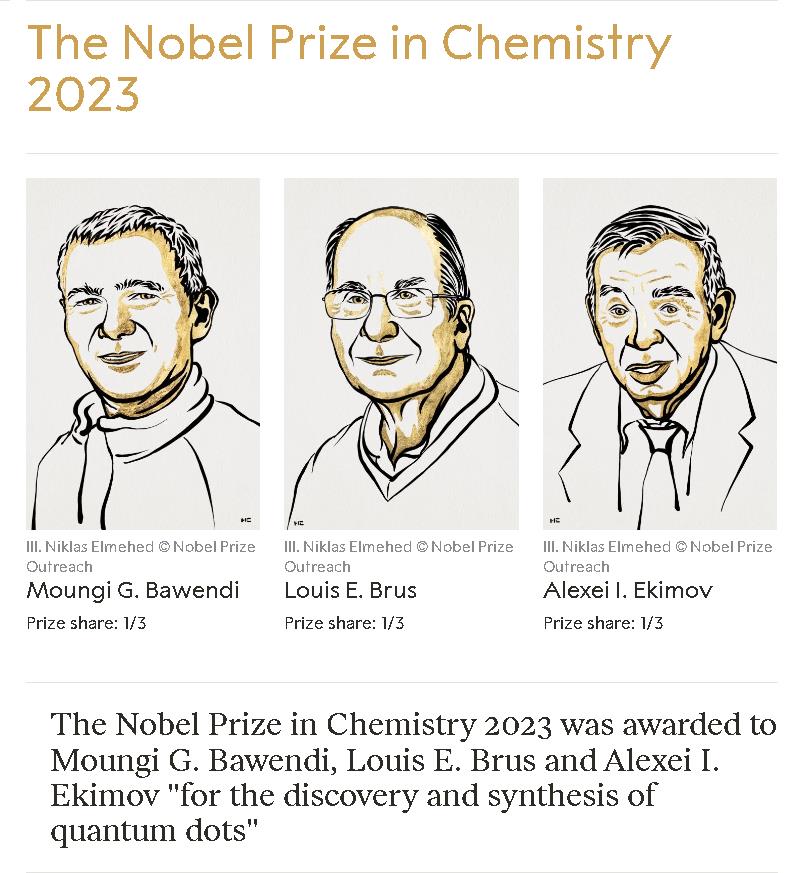 新華社斯德哥爾摩10月4日電(記者和苗 付一鳴)瑞典皇家科學院4日宣布,將2023年諾貝爾化學獎授予三名科學家蒙吉·巴文迪、路易斯·布魯斯和阿列克謝·葉基莫夫,以表彰他們在發現和合成量子點方面所作出的貢獻。