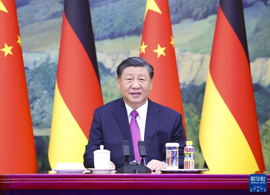 習近平強調,當前國際形勢正在發生很大變化,地緣沖突加劇,經濟復蘇乏力,冷戰思維回潮。中國和德國都是負責任的大國,不僅要發展好雙邊關系、做合作共贏的表率,更要捍衛國際秩序和多邊主義,攜手應對全球性挑戰。中歐關系關乎世界格局穩定和亞歐大陸繁榮,值得雙方全力維護好、發展好。中國將歐洲視為全面戰略伙伴和多極化中的重要一極。希望德國推動歐盟秉持市場化和公平原則,同中方一道,維護公平市場競爭和自由貿易,維護全球產業鏈供應鏈穩定。