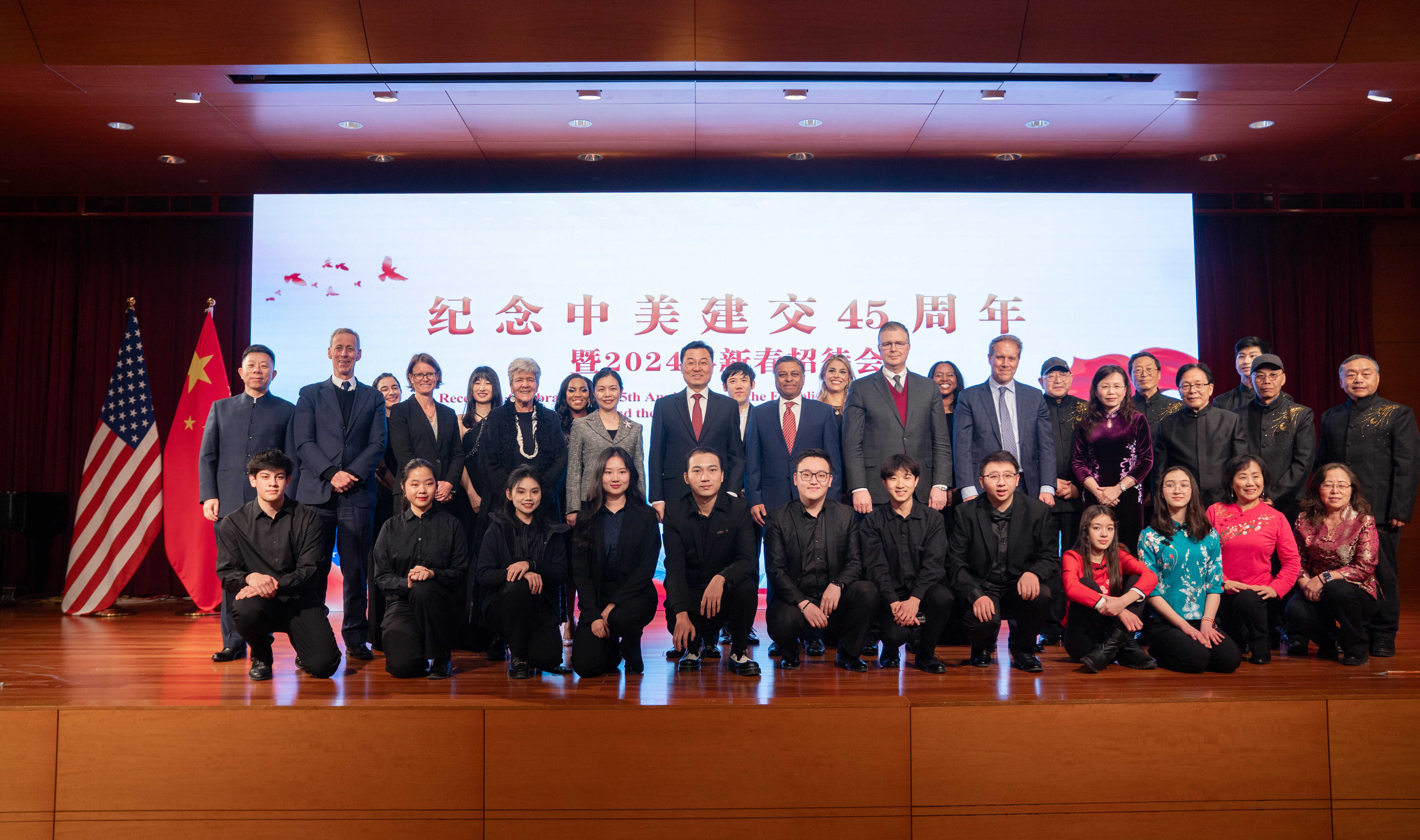 美中關系全國委員會會長歐倫斯、美中貿易全國委員會會長艾倫分別在致辭中回顧了兩國建交歷程。美國前駐華大使芮效儉、普理赫、雷德、洪博培、駱家輝、鮑卡斯、布蘭斯塔德分別發來致辭,獻上對中美建交45周年的熱烈祝賀和對中國人民的新春祝福。