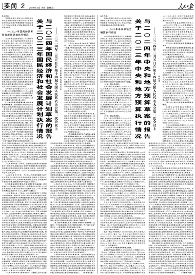 關于2023年國民經濟和社會發展計劃執行情況與2024年國民經濟和社會發展計劃草案的報告