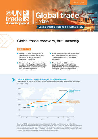 報告顯示,與去年第四季度相比,今年一季度發(fā)展中國家貿(mào)易和南南貿(mào)易進出口額均增長約2%;發(fā)達國家進口額持平,出口額僅增長1%。按行業(yè)來看,各行業(yè)貿(mào)易增長差異很大,綠色能源和人工智能相關(guān)產(chǎn)品增長強勁。