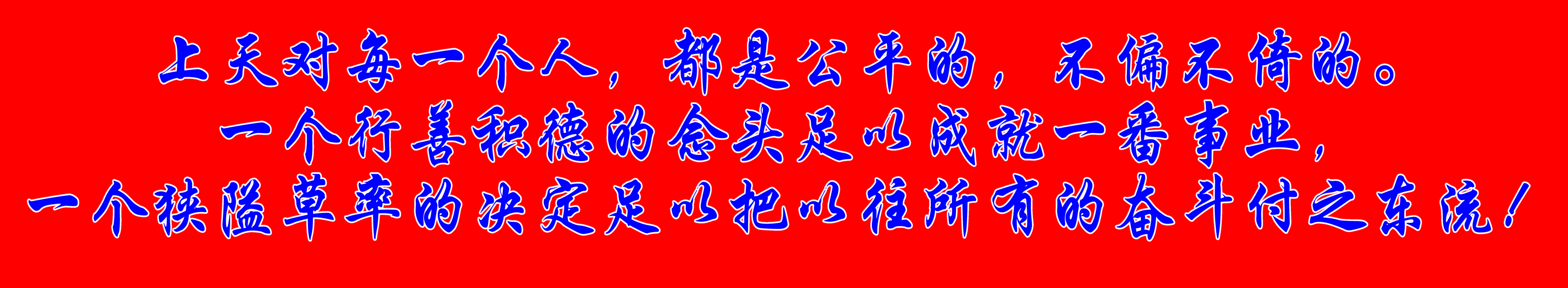 上天對每一個人,都是公平的,不偏不倚的。一個行善積德的念頭足以成就一番事業,一個狹隘草率的決定足以把以往所有的奮斗付之東流!