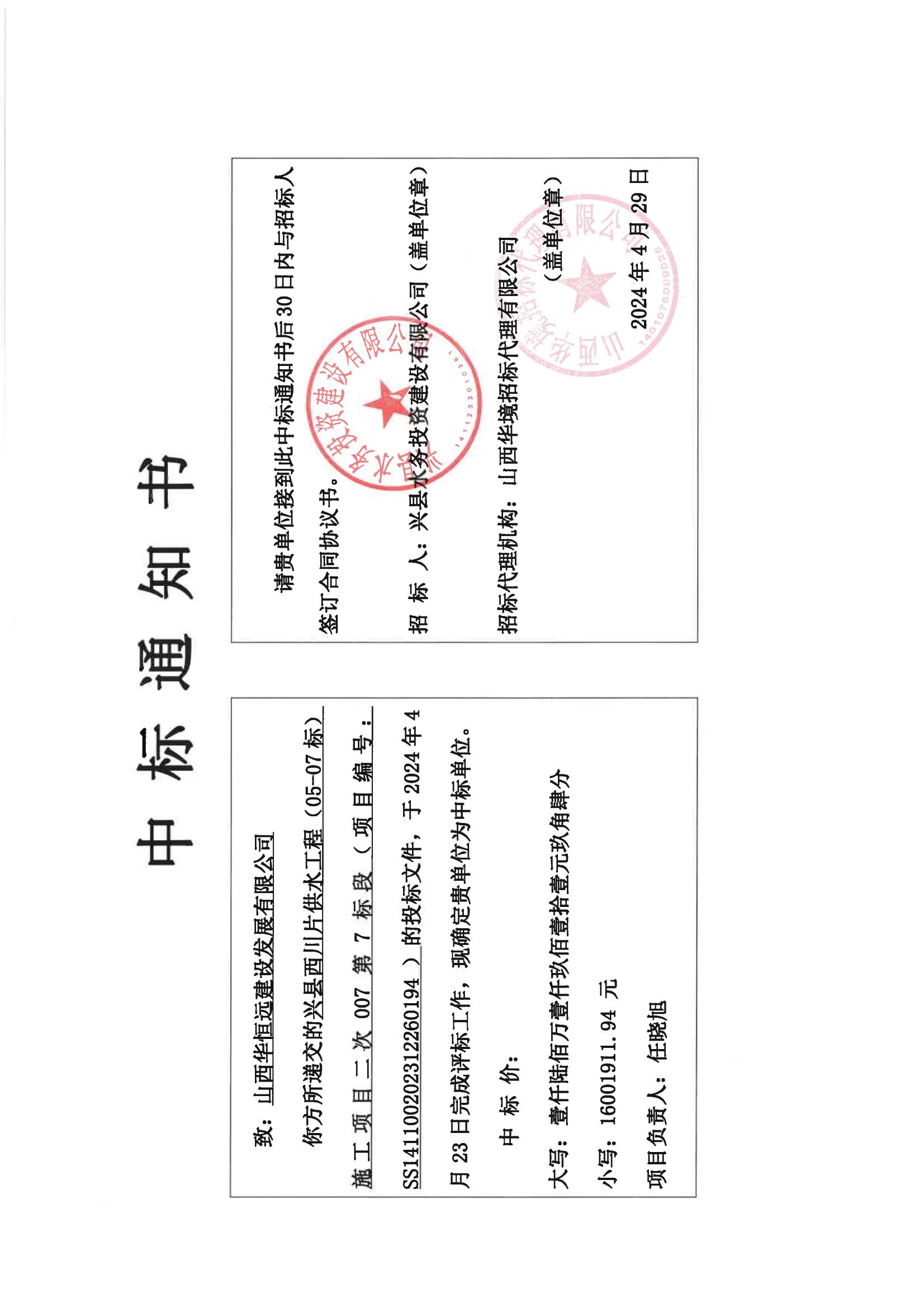 2024年興縣西川片供水工程(05-07 標(biāo))施工項(xiàng)目二次007第7標(biāo)段