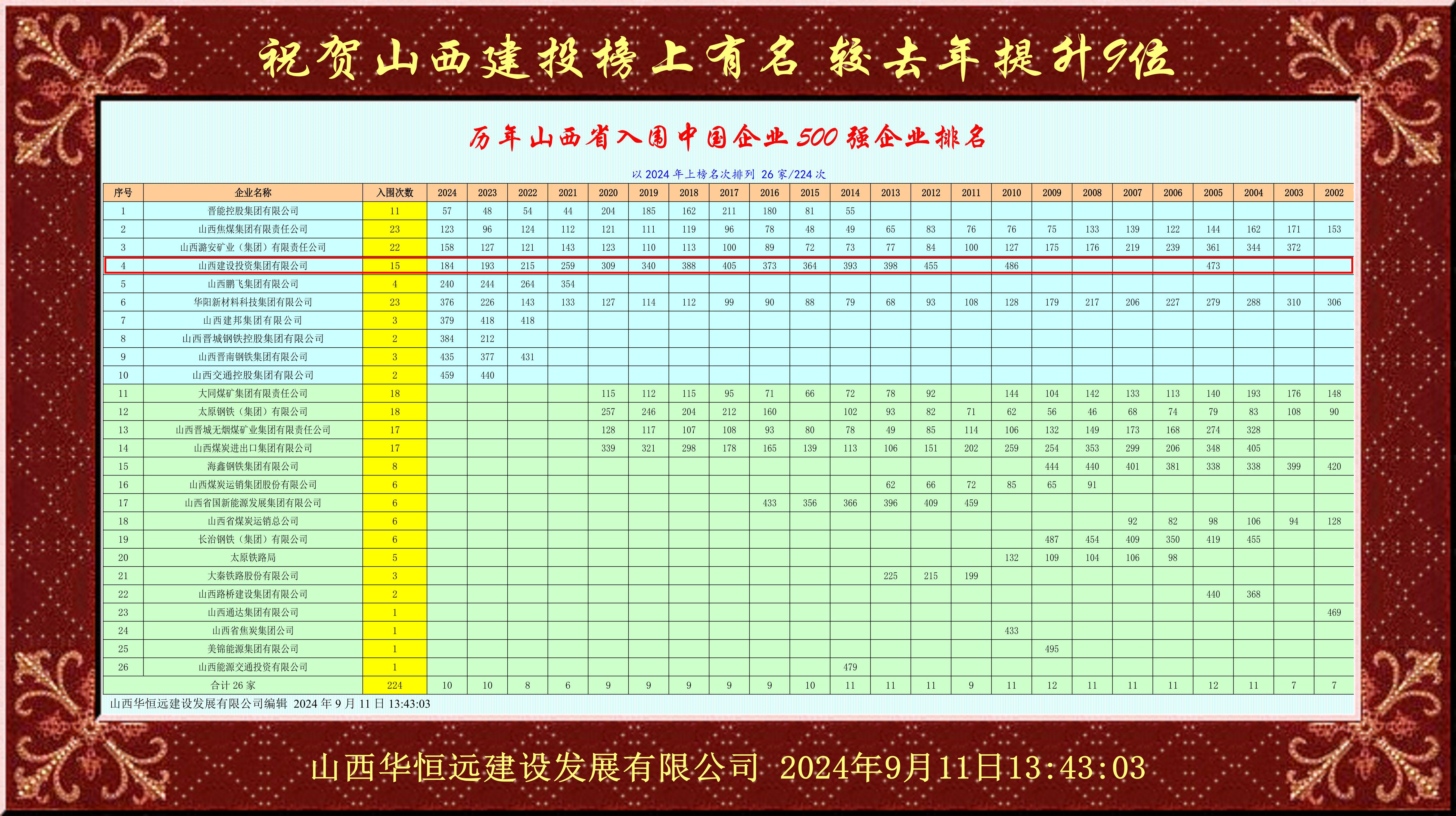 本報(bào)訊(記者晉帥妮)近日,中國(guó)企業(yè)聯(lián)合會(huì)、中國(guó)企業(yè)家協(xié)會(huì)發(fā)布“2024中國(guó)大企業(yè)創(chuàng)新100強(qiáng)”名單,山西建投集團(tuán)成為我省唯一上榜企業(yè),位列第85位。