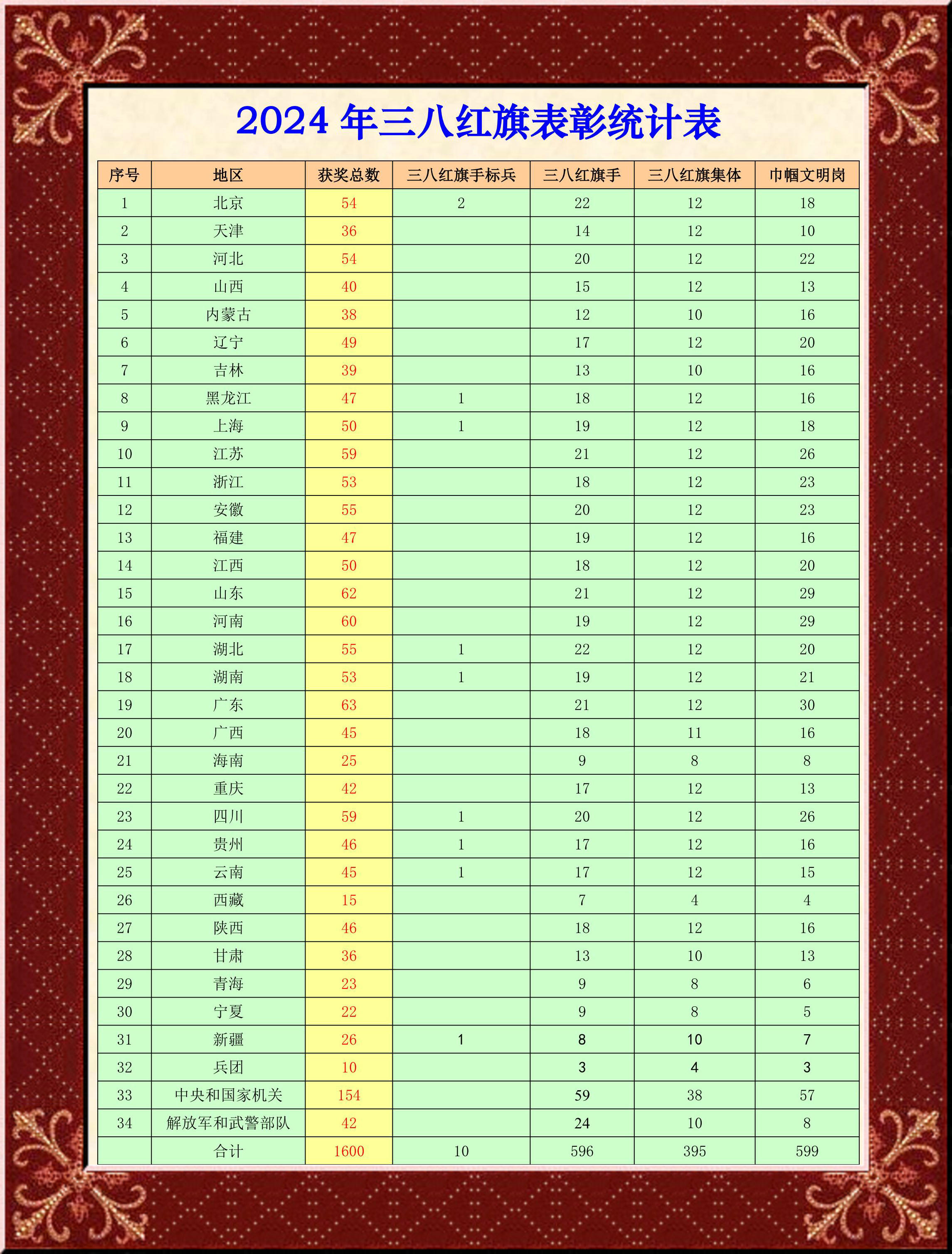 2024年度全國三八紅旗表彰名單