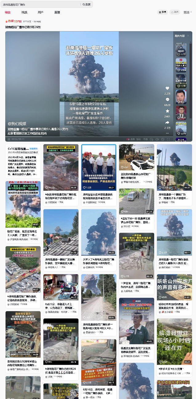 新華社長沙6月17日電 記者17日晚間從湖南省臨澧煙花廠爆炸事故現場救援指揮部獲悉,該事故現場搜救工作已結束,爆炸導致9人遇難,26人受傷。傷員救治、遇難者善后、傷亡人員家屬安撫、事故調查等工作正在展開。
