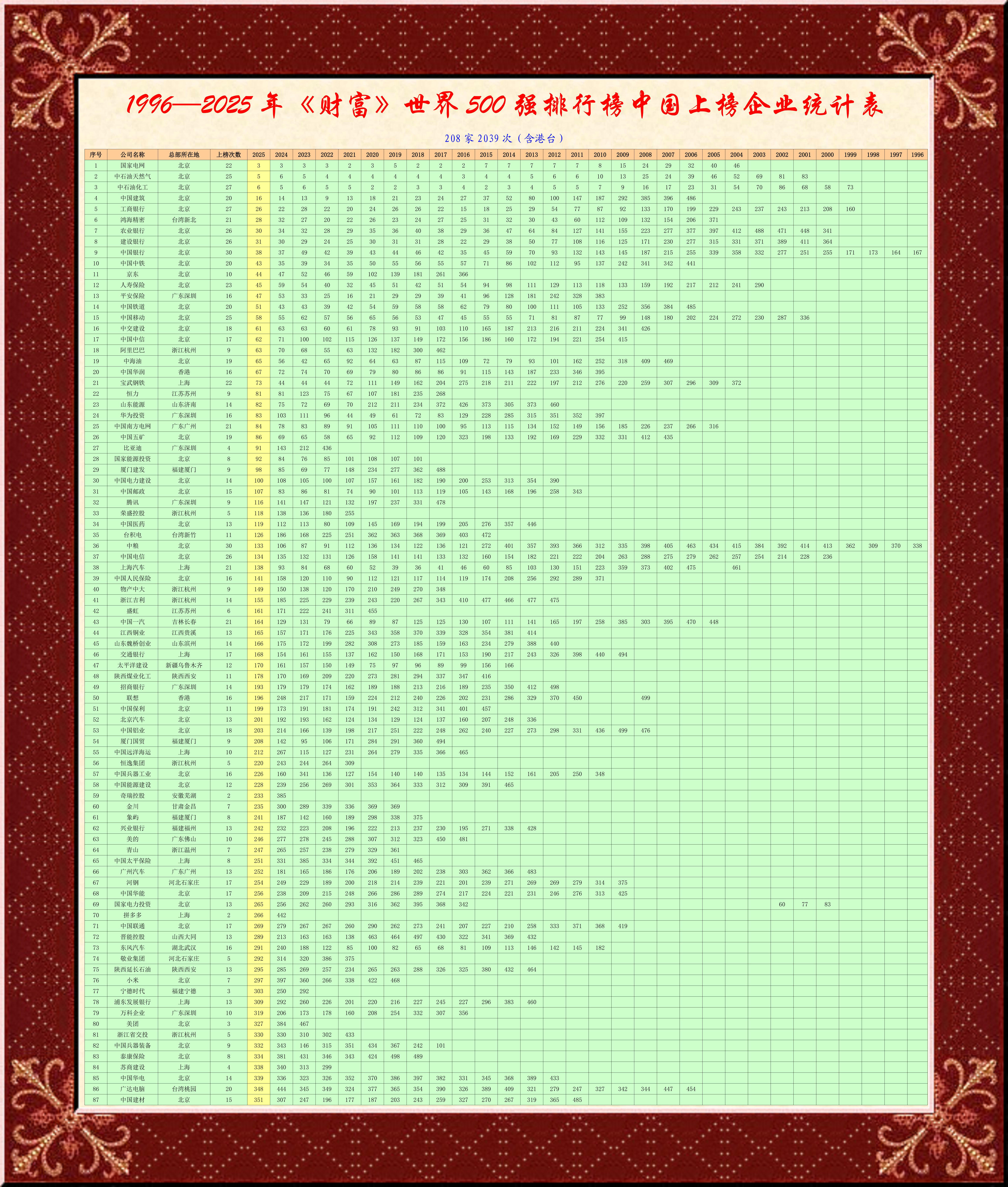2025年《財(cái)富》世界500強(qiáng)的130家中國企業(yè)名錄