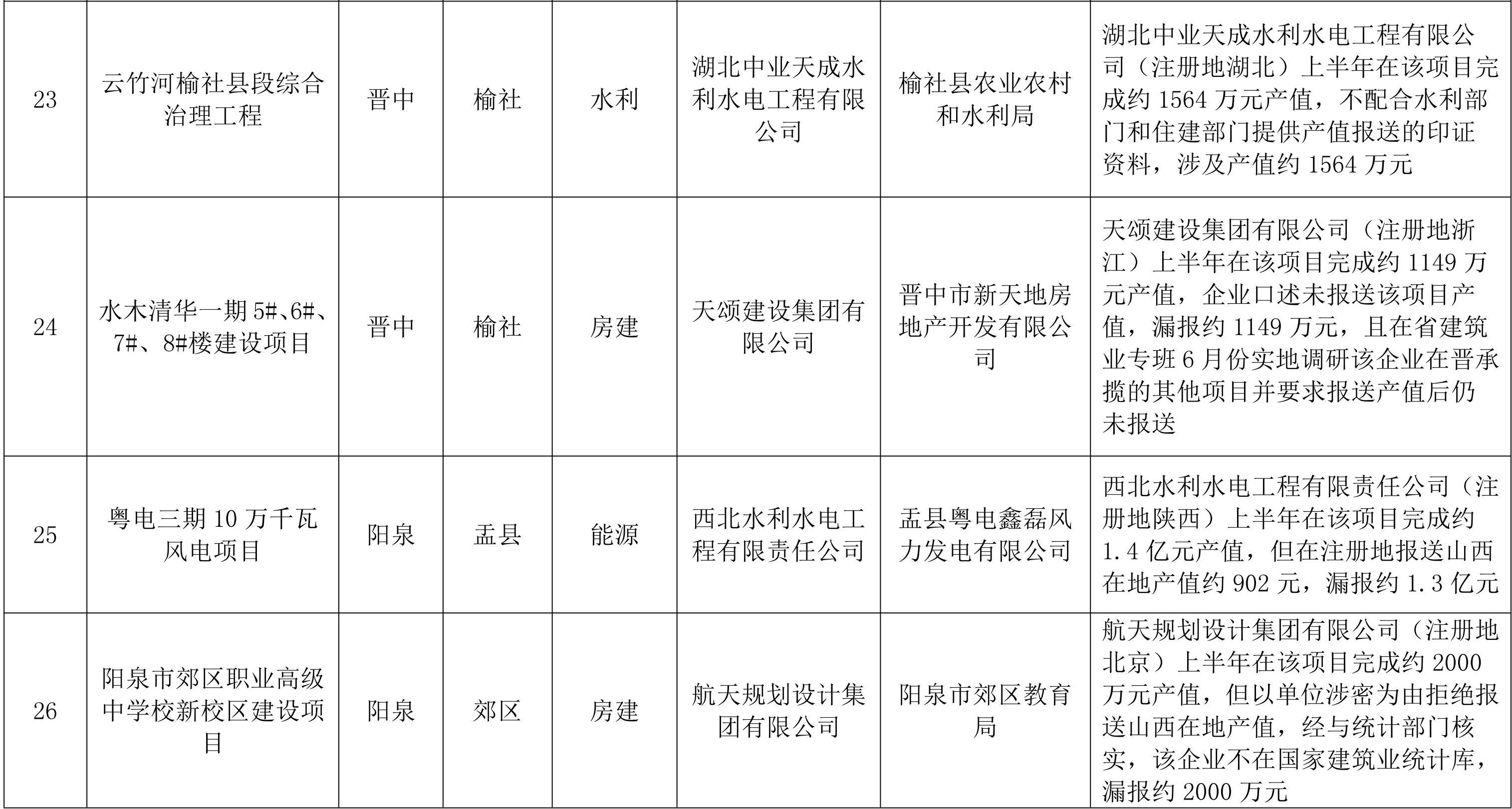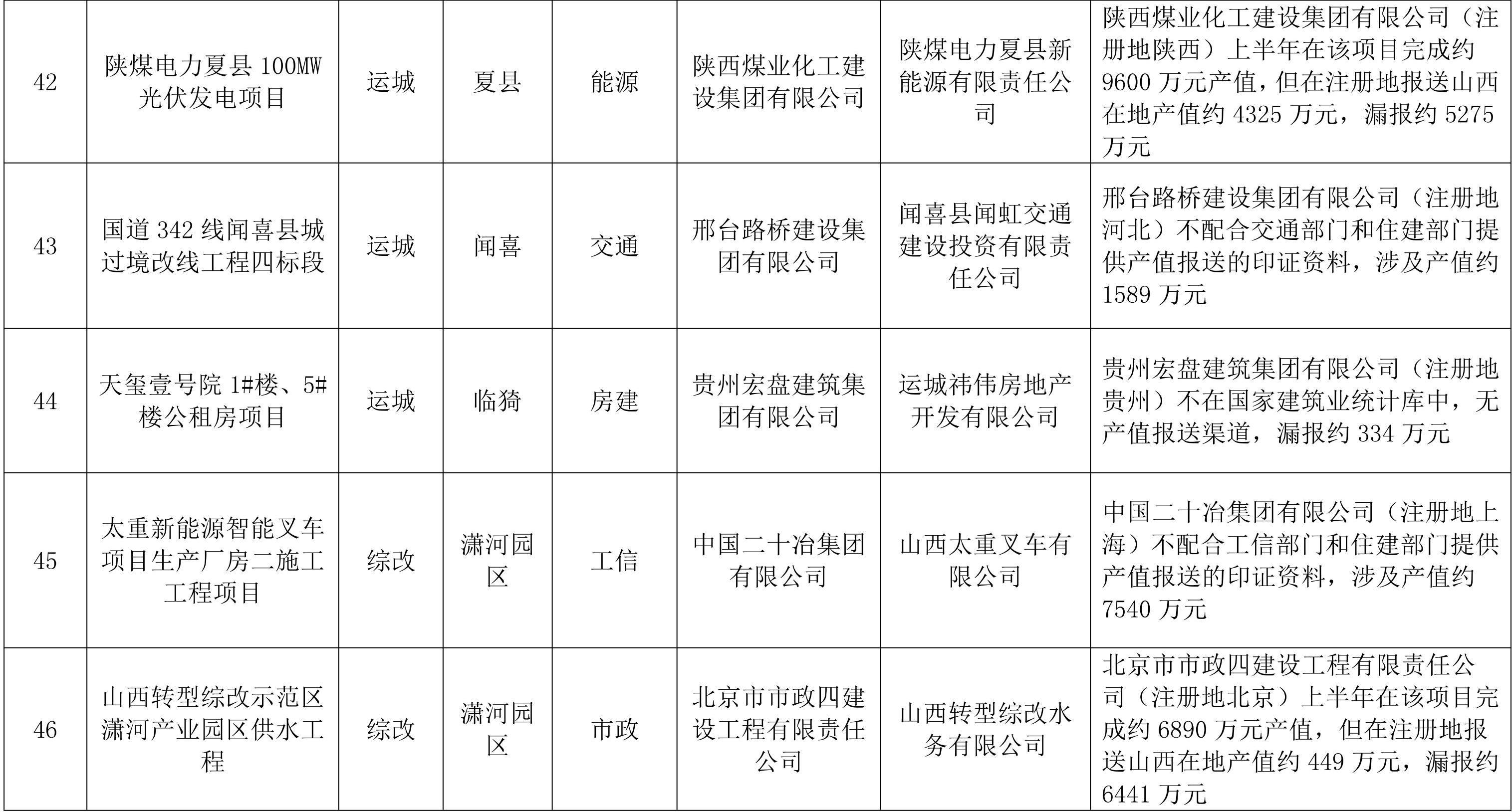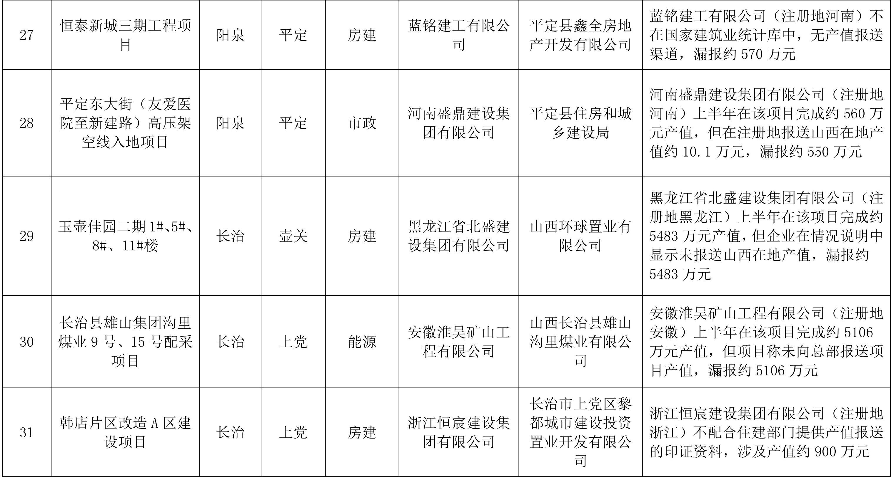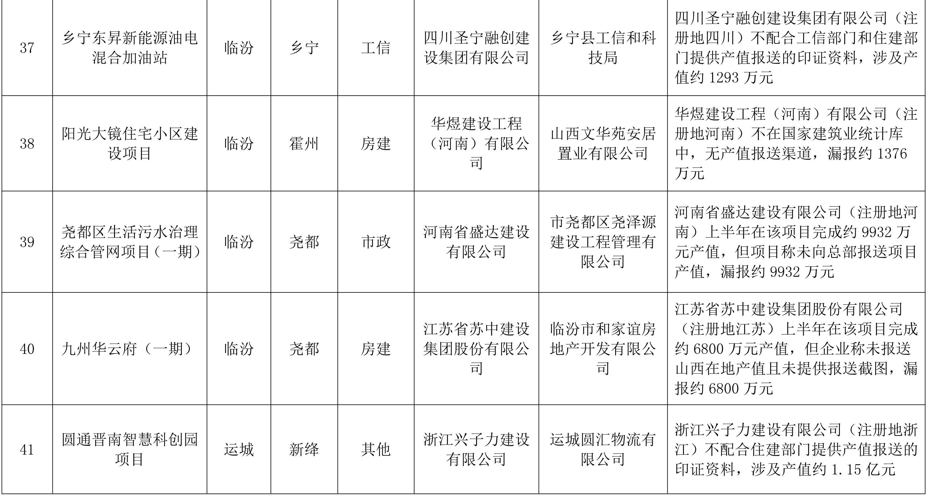 按照安排,省建筑業運行工作專班于2025年7月28日至8月8日開展了全省建筑業運行情況督查檢查工作,實地核查了11個市38個縣(市、區)和山西轉型綜合改革示范區的120個在建項目。督查中發現部分項目施工企業存在產值漏報、數據造假、不配合行業部門提供印證資料等問題,違反了《中華人民共和國統計法》第八條“國家機關、企業事業單位和其他組織以及個體工商戶和個人等統計調查對象,必須依照本法和國家有關規定,真實、準確、完整、及時地提供統計調查所需的資料,不得提供不真實或者不完整的統計資料,不得遲報、拒報統計資料”規定,無法真實反映我省建筑業在地產值情況,給國家和我省經濟造成損失。