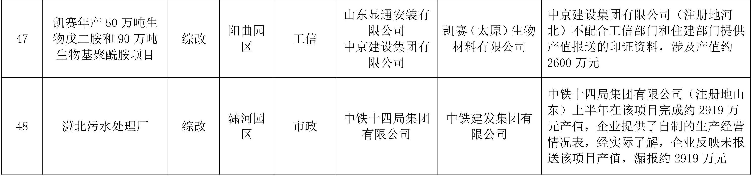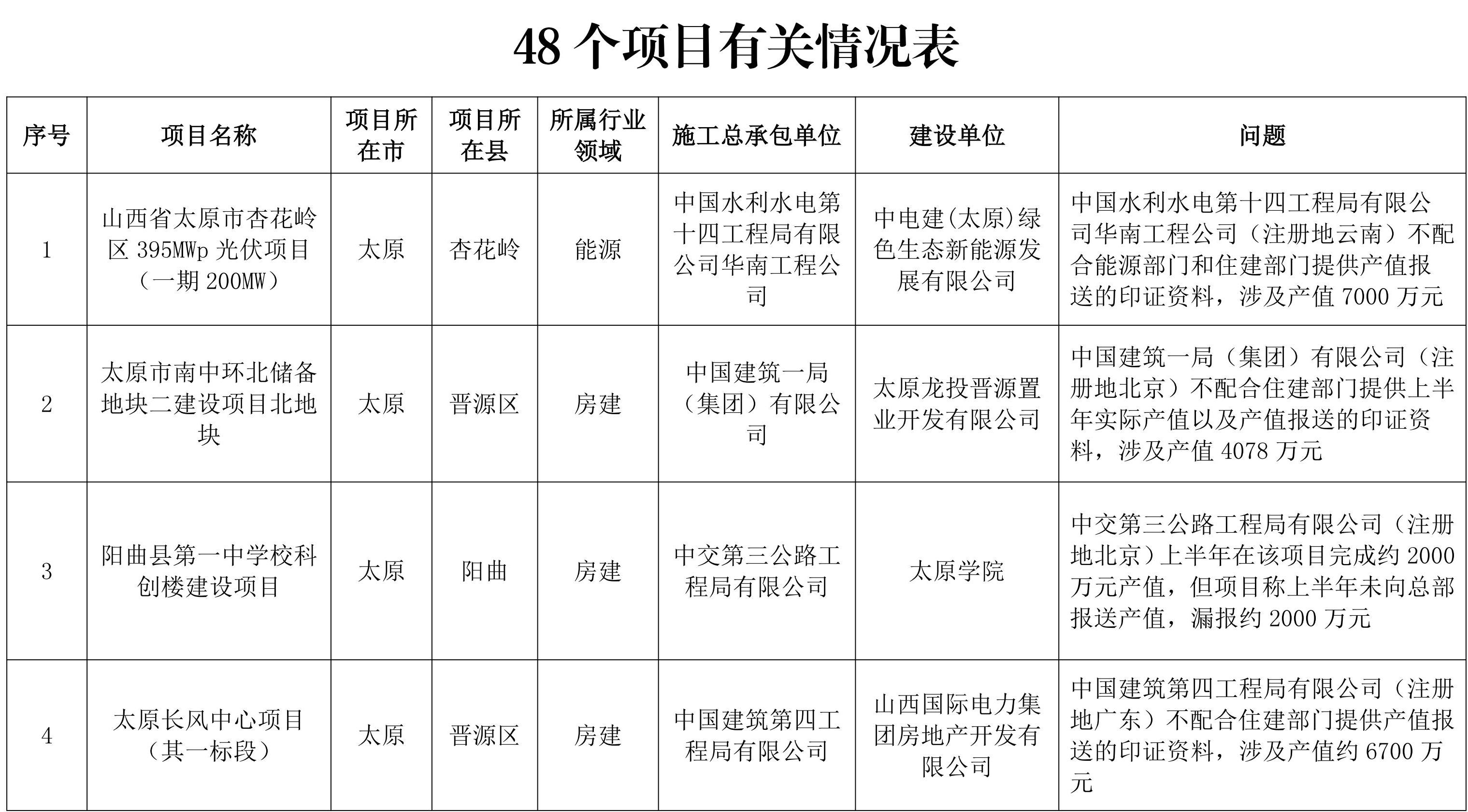 經各市建筑業專班和項目負責人認定,現將48個項目的有關情況予以公布。各市建筑業專班要緊盯問題,做好“回頭看”,確保漏報產值在三季度如實報送。