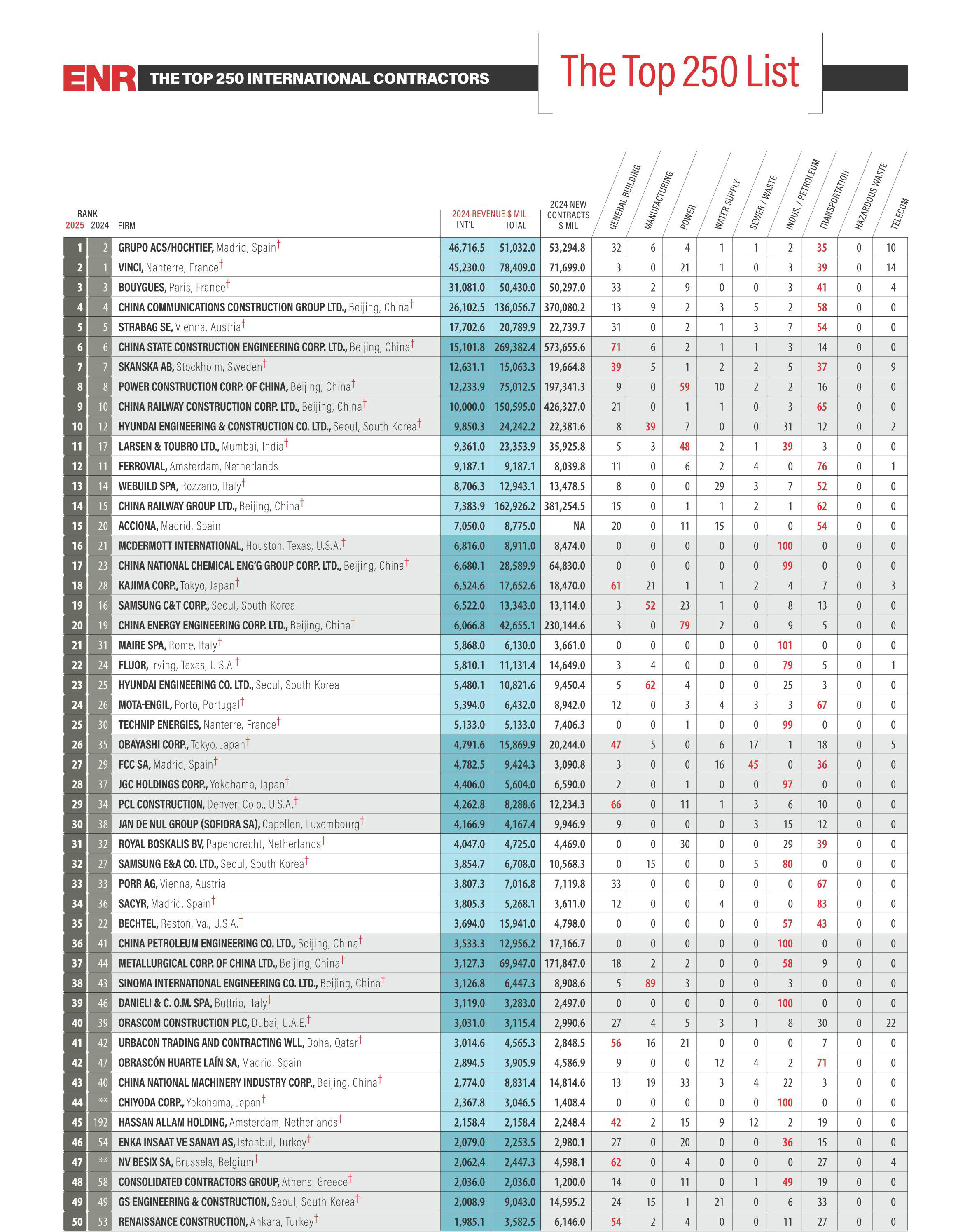 2025年度《美國工程新聞紀錄(ENR)》全球最大250家國際承包商完整榜單