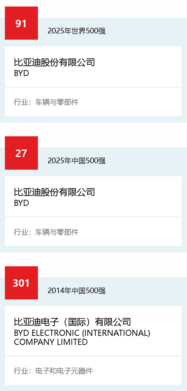 直到最近,仍然很少有人能夠想象比亞迪(英文名為Build Your Dreams,頗具創(chuàng)意)的業(yè)績可以碾壓那些擁有悠久歷史的巨頭。但該公司在近年來的發(fā)展軌跡可謂“令人震驚”,去年的銷量已經(jīng)達(dá)到425萬輛,相當(dāng)于2020年的10倍,今年更計(jì)劃將年銷量進(jìn)一步提升至550萬輛,其2024年售出的產(chǎn)品大多為插電式混合動力車型(PHEV)。比亞迪在中國兩座新工廠的產(chǎn)能都將超過當(dāng)今世界最大的汽車工廠—位于德國沃爾夫斯堡的大眾公司綜合廠區(qū)。在2024年?duì)I收增長27%至1,080億美元后,比亞迪在《財(cái)富》世界500強(qiáng)的排名大幅躍升。