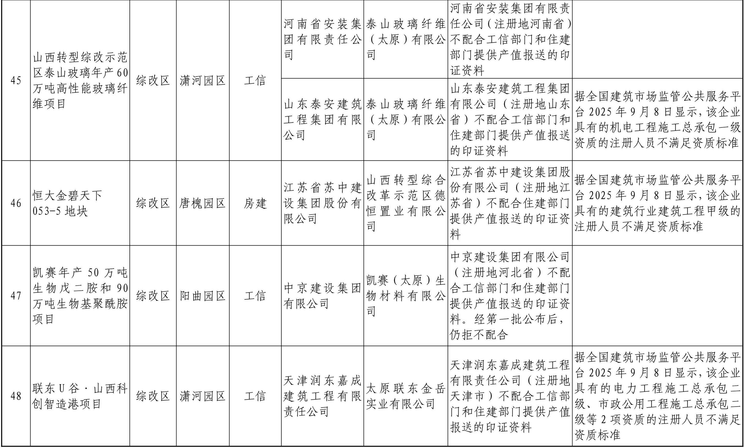 經(jīng)各市建筑業(yè)專班認定,現(xiàn)將第二批48個問題項目的有關(guān)情況予以公布。各市建筑業(yè)專班要緊盯問題,加大督導(dǎo)服務(wù)力度,做好項目施工產(chǎn)值入統(tǒng)追溯,確保三季度在地產(chǎn)值應(yīng)報盡報。