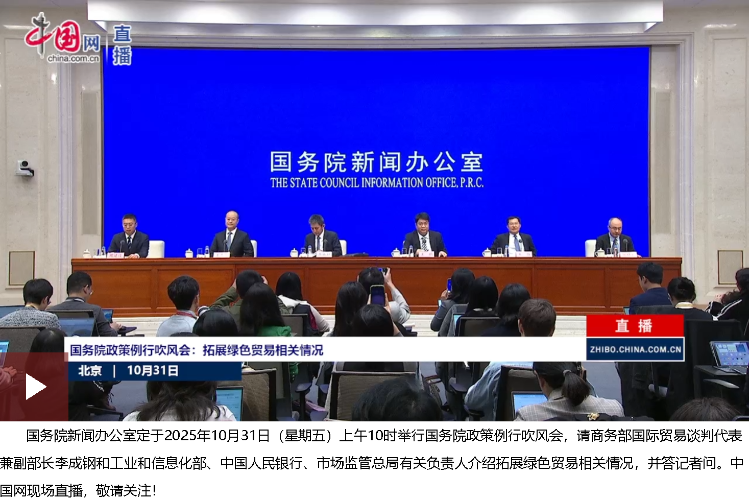 謝謝主持人。各位媒體界的朋友,大家上午好!很高興和工信部、中國人民銀行、市場監管總局的同事一起參加今天的新聞吹風會,非常感謝大家對綠色貿易工作的關心和支持。