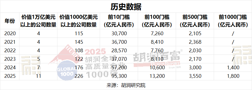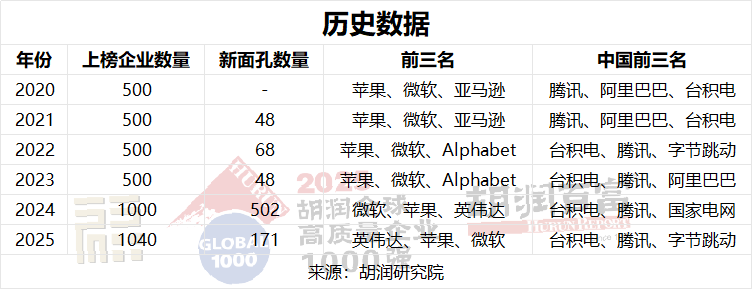 自2024年起,胡潤研究院將全球最具價值公司榜單從500強擴展至1000強,并將國有企業納入其中。