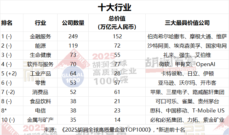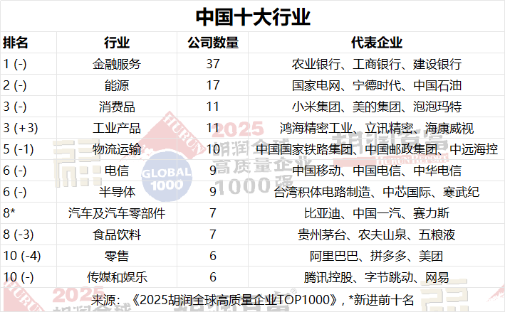 胡潤研究院發布《2025胡潤全球高質量企業TOP1000》
