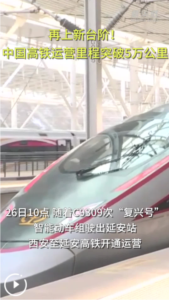 當日,隨著西延高鐵開通,中國高鐵運營里程突破5萬公里。從《建國方略》中對鐵路發展的宏偉構想,到中國式現代化征程上的鋼鐵洪流,“復興號”成為穿越歷史的信使,將延安的紅色年輪,匯入中國發展的強勁脈動。