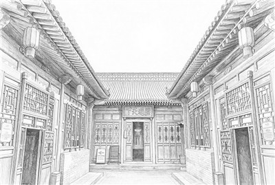 山西晉中平遙古城中國票號博物館日昇昌舊址。AI修飾生成素描畫