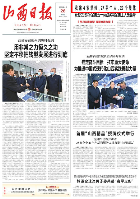 4月27日,2023年慶祝“五一”國際勞動節暨全國五一勞動獎和全國工人先鋒號表彰大會在北京人民大會堂隆重舉行。207個集體和1035名個人分獲全國五一勞動獎狀、獎章,1044個集體獲全國工人先鋒號。我省4家單位、27名個人、29個集體受到表彰。