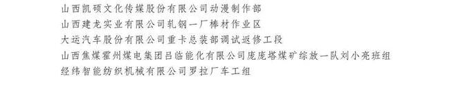 表彰會上,我省中鐵三局集團建筑安裝工程有限公司等4家單位獲全國五一勞動獎狀;官生花等27名個人獲全國五一勞動獎章;太原中鐵軌道交通建設運營有限公司太原地鐵2號線大南門地鐵站等29個集體獲全國工人先鋒號。我省受表彰人員和集體以基層一線人員為主體,全國五一勞動獎章人選中,產業工人10名,占37.0%;其他一線職工和專業技術人員8名,占29.6%。特別關注了在推動我省經濟快速發展中發揮作用的非公有制企業、新就業形態勞動者等方面的職工,并突出了重點產業和在疫情重癥救治方面貢獻突出的醫務人員。其中,重點產業人選分別占全國五一勞動獎狀、全國五一勞動獎章、全國工人先鋒號的75%、55.6%、44.8%。