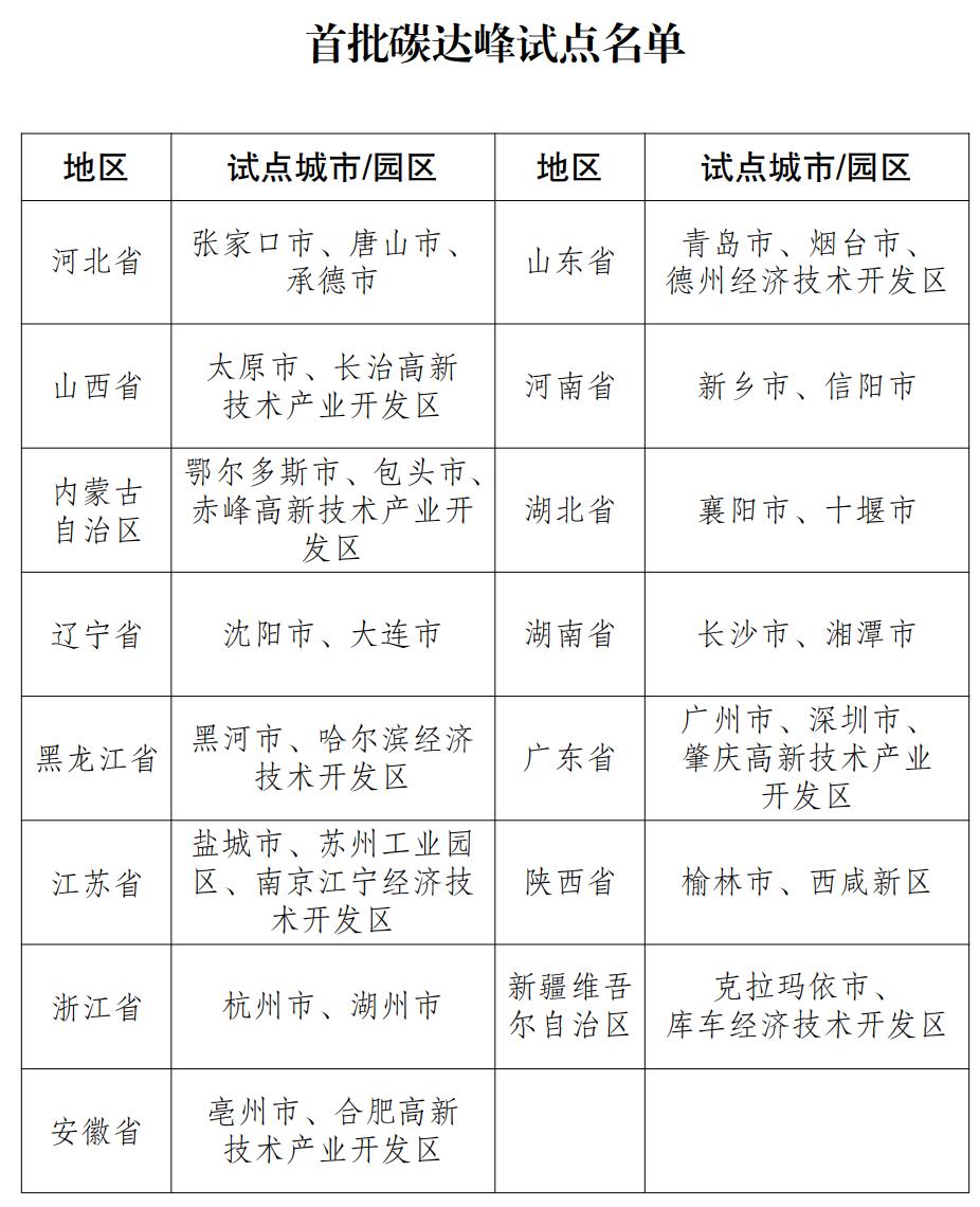 印發(fā)首批碳達(dá)峰試點(diǎn)名單的通知