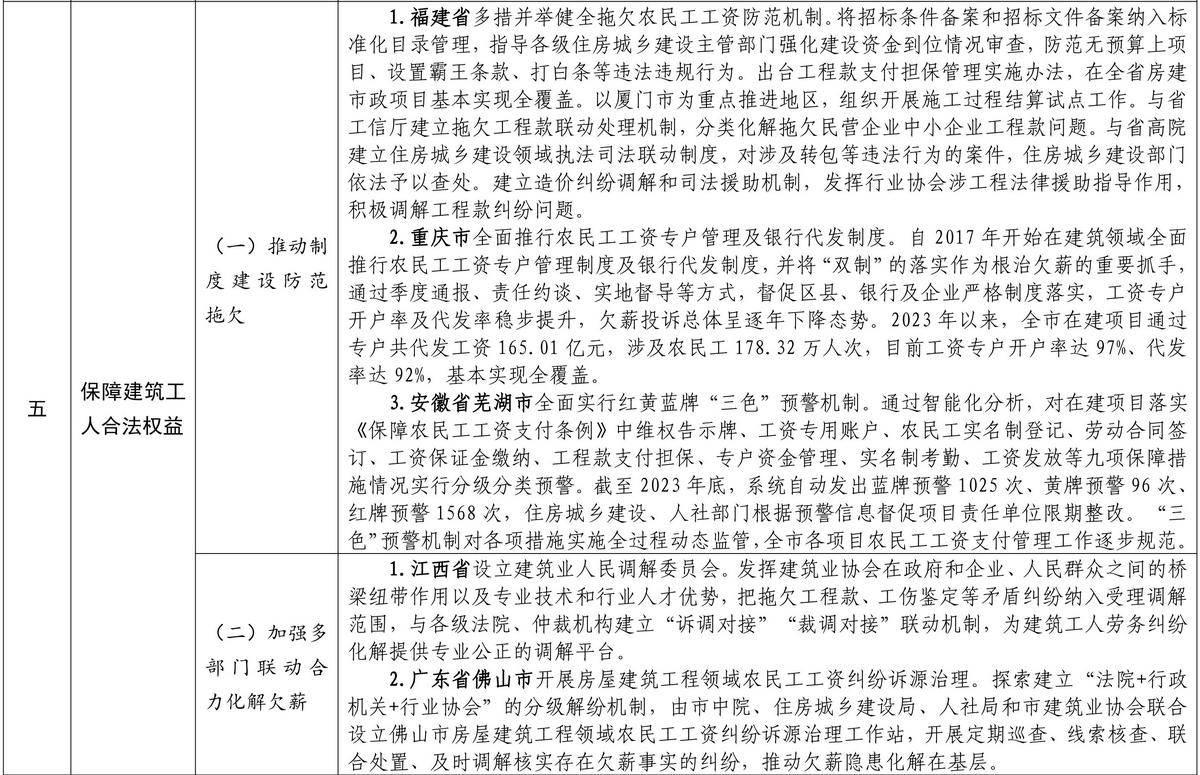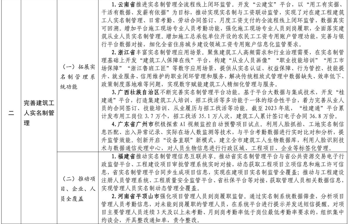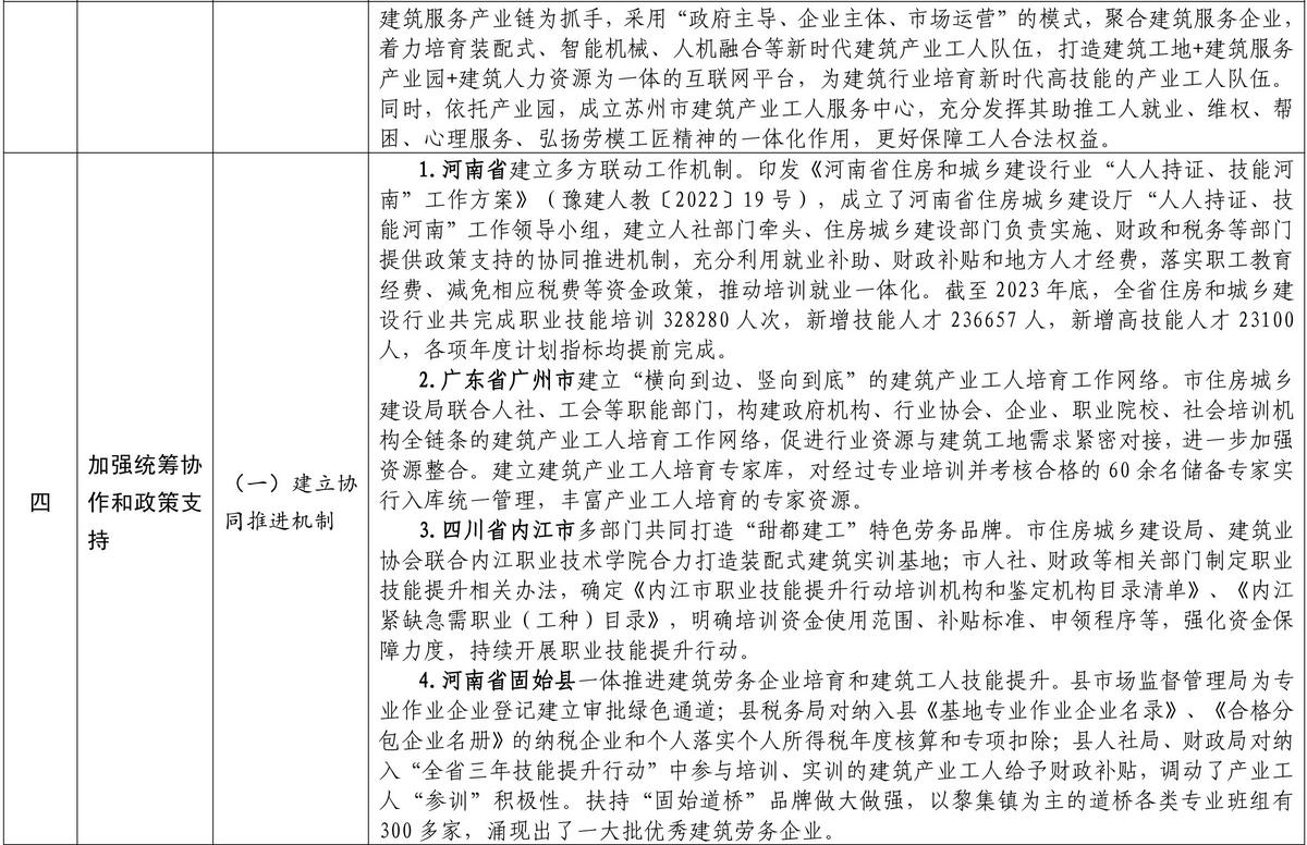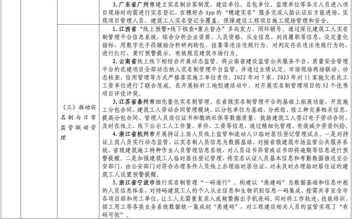 按照《住房和城鄉建設部等部門關于加快培育新時代建筑產業工人隊伍的指導意見》要求,各地圍繞推進農民工向新時代建筑產業工人轉型、完善建筑工人實名制管理、提升建筑工人技能水平、加強統籌協作和政策支持、保障建筑工人合法權益等方面,積極探索、大力推進新時代建筑產業工人隊伍建設,取得了積極成效。近日,住房和城鄉建設部印發培育新時代建筑產業工人可復制經驗做法清單(第一批)。