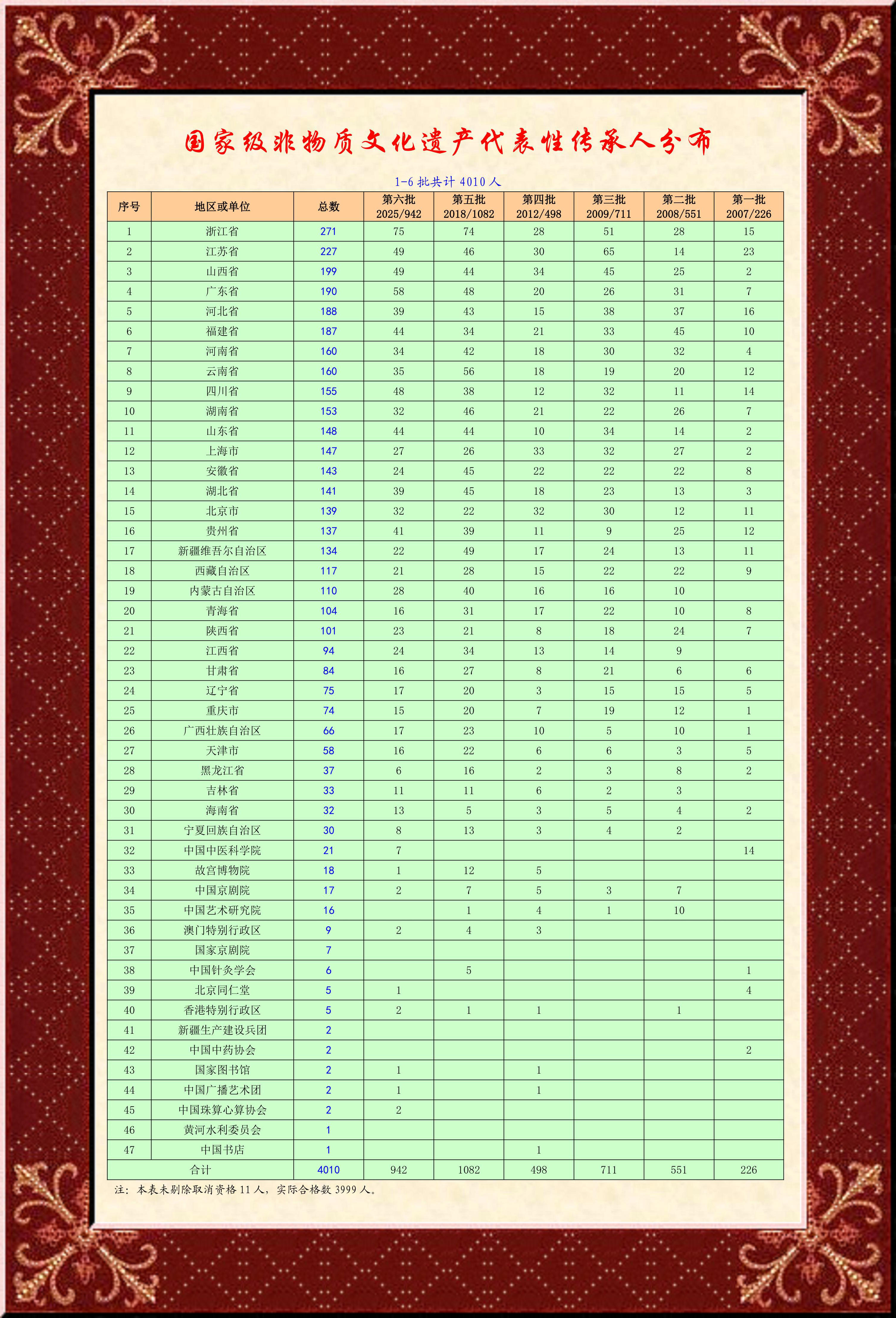 【行業資料】國家級非物質文化遺產代表性項目代表性傳承人名錄