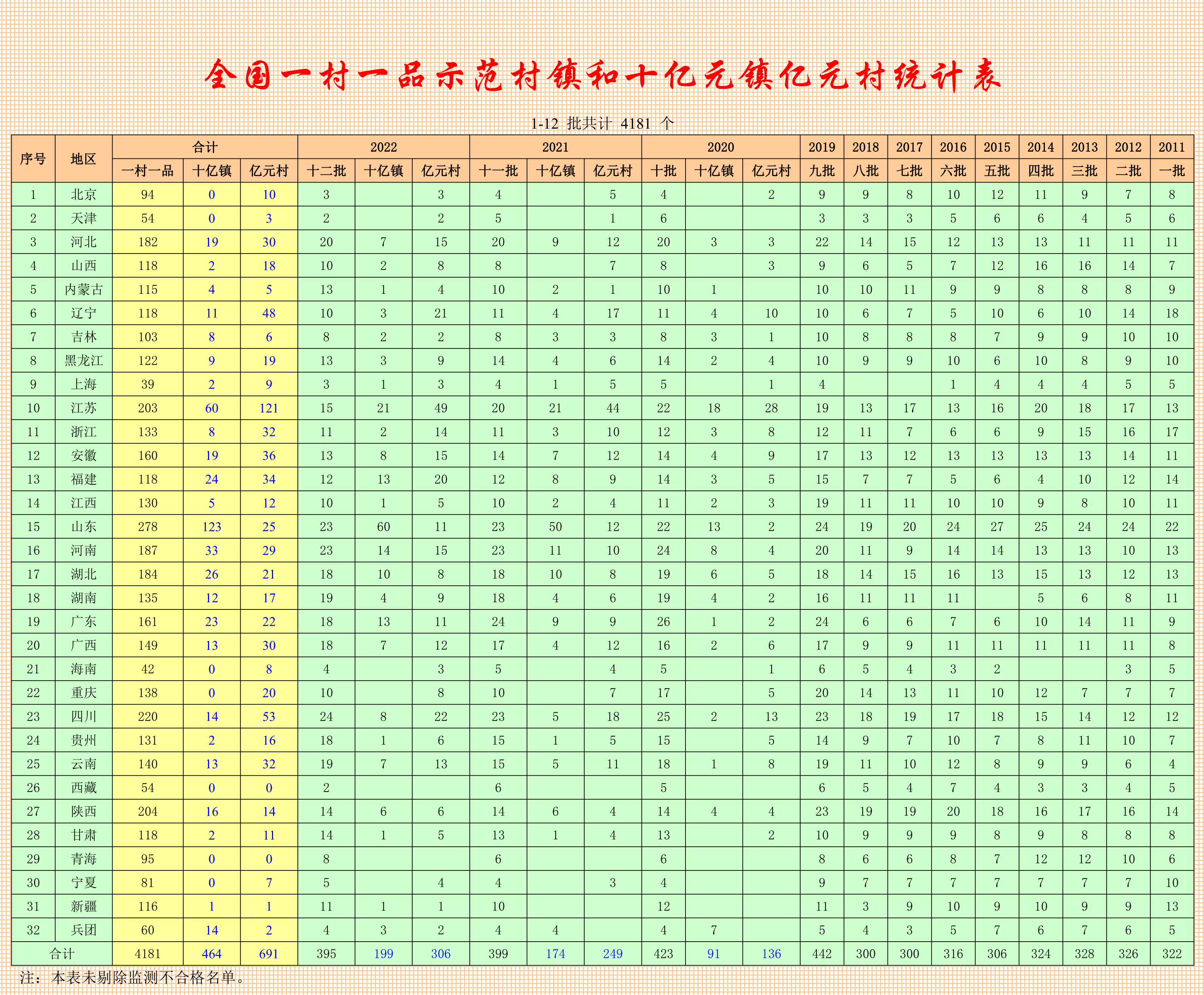 序號 全國一村一品示范村鎮名稱 年度 批次