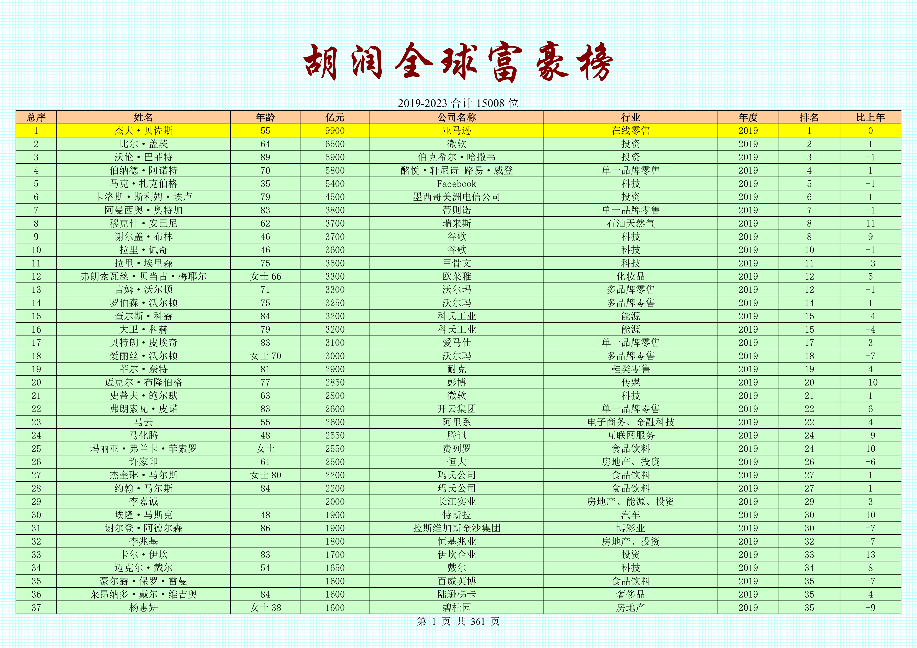 【行業資料】2023胡潤全球富豪榜2023-03-24 【行業資料】2021-2022胡潤中國民營企業百強榜2023-03-24 【行業動態】2022胡潤中國民營企業可持續發展百強榜2023-03-24 【行業動態】2023胡潤全球富豪榜變動劇烈!LV總裁首登首富,445人落選2023-03-24 【行業資料】2022意才·胡潤財富報告2023-03-12 【行業資料】胡潤世界500強2020-20222023-02-01 【行業資料】2019-2022胡潤中國(民營企業)500強排行榜2023-02-01 【行業資料】胡潤全球富豪榜 胡潤中國百富榜總榜單2023-01-29 【行業資料】胡潤百富榜總榜單2023-01-06