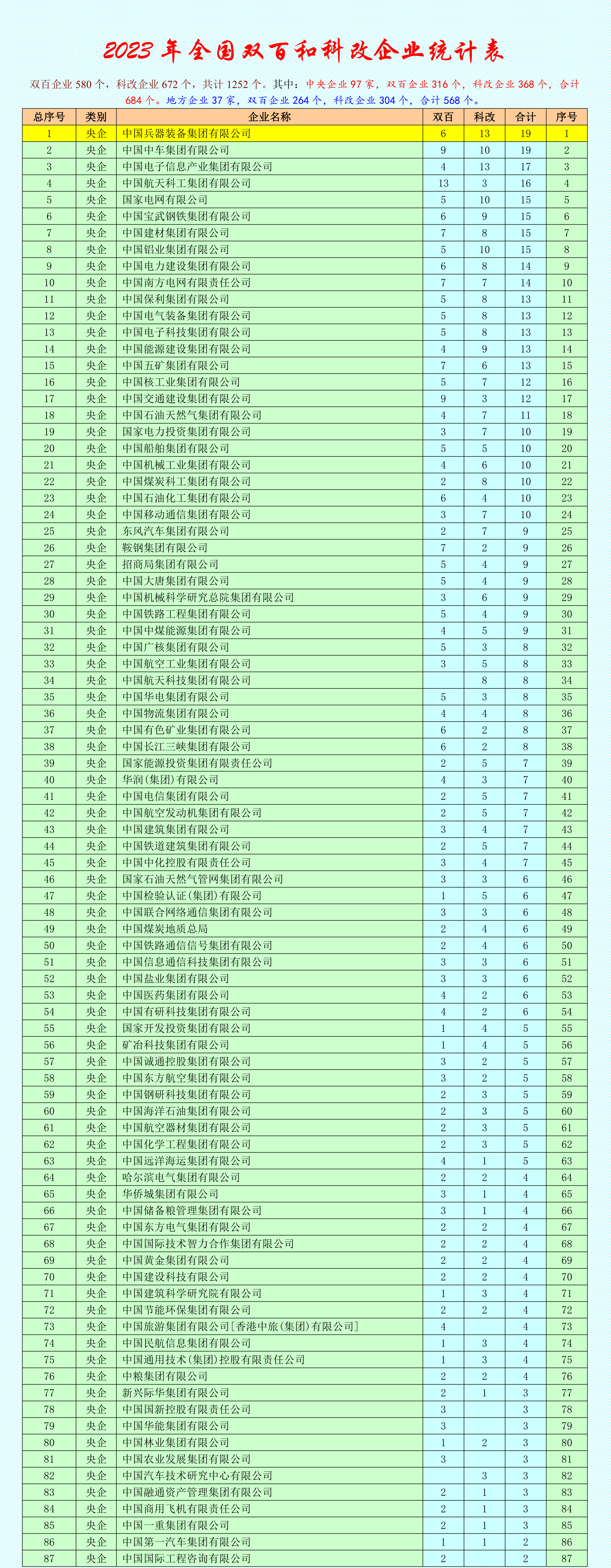 來源:共計(jì)1252家,其中:雙百企業(yè)580家,科改企業(yè)672家