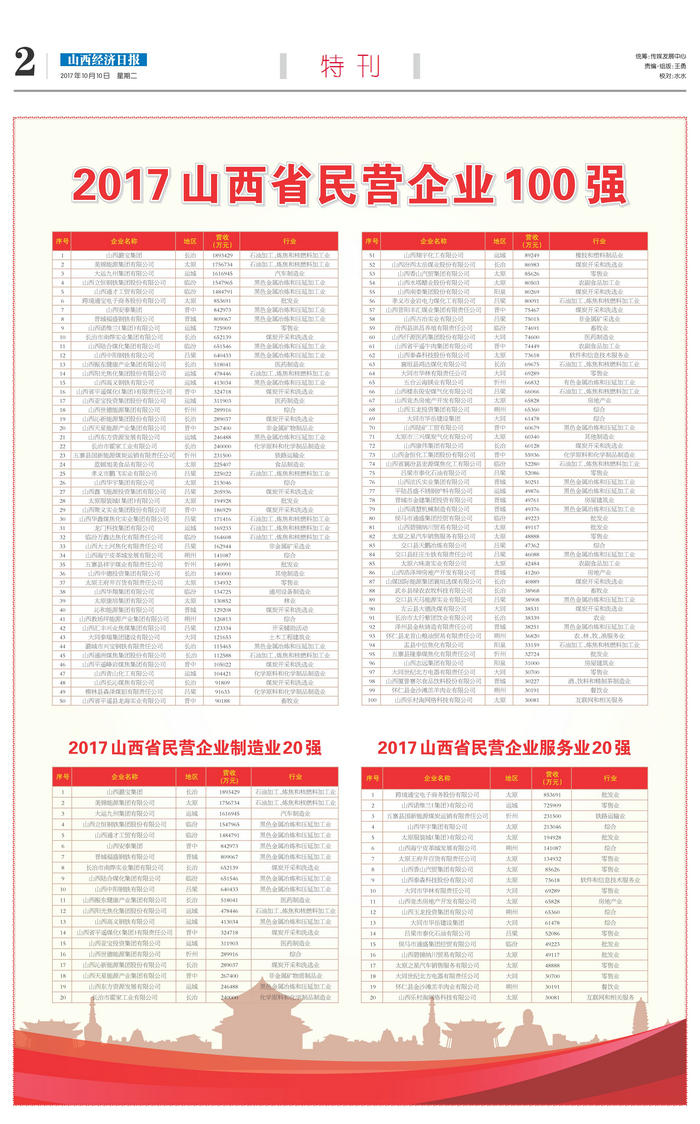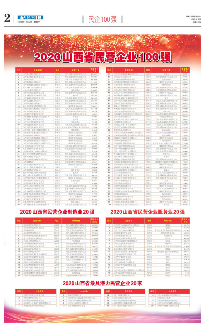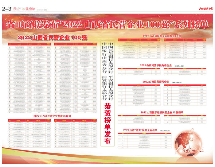 2023山西省民營(yíng)企業(yè)100強(qiáng)榜單