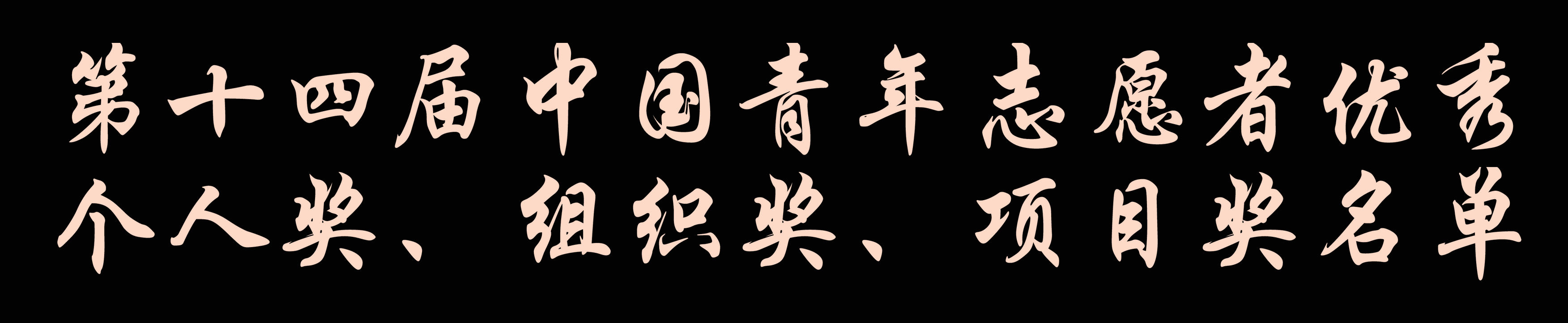 為集中展示新時代新征程青年志愿者忠誠于黨、奉獻祖國、服務(wù)人民的精神風(fēng)貌,激勵和引導(dǎo)廣大青年積極踐行和弘揚社會主義核心價值觀,為強國建設(shè)、民族復(fù)興偉業(yè)而奮斗,共青團中央、中國青年志愿者協(xié)會決定,授予北京2022年冬奧會、冬殘奧會志愿者群體、杭州第19屆亞運會和第4屆亞殘運會志愿者群體、成都第31屆世界大學(xué)生夏季運動會志愿者群體、第一屆全國學(xué)生(青年)運動會志愿者群體等260名個人第十四屆“中國青年志愿者優(yōu)秀個人獎”,授予浙江大學(xué)馬蘭紅色志愿服務(wù)團等100個組織第十四屆“中國青年志愿者優(yōu)秀組織獎”,授予扎根計劃——“三走四幫五聯(lián)動”賦能鄉(xiāng)村振興志愿服務(wù)項目等100個項目第十四屆“中國青年志愿者優(yōu)秀項目獎”。