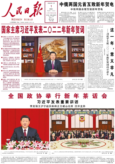 2021年元旦《人民日報》發表《國家主席習近平發表二〇二一年新年賀詞》。