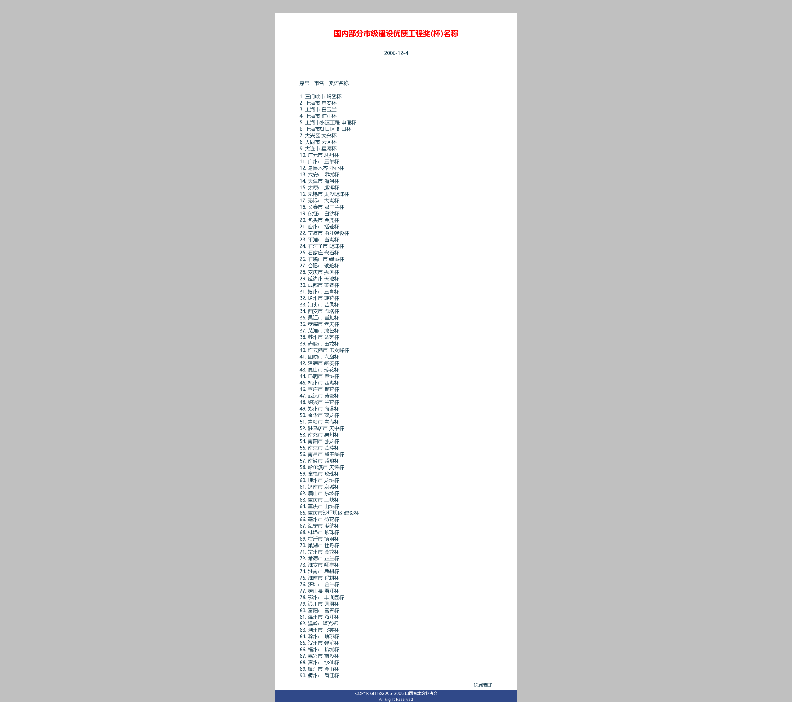 這是十七年前,在山西省建筑業(yè)協(xié)會管理網(wǎng)站時,收集的全國各地建筑業(yè)評獎名稱,對于了解我們這個行業(yè)和社會的重視程度,管中窺豹,可見一斑。做企業(yè),首先要知道和懂得瞄準(zhǔn)戰(zhàn)略目標(biāo),有的放矢,正中靶心。