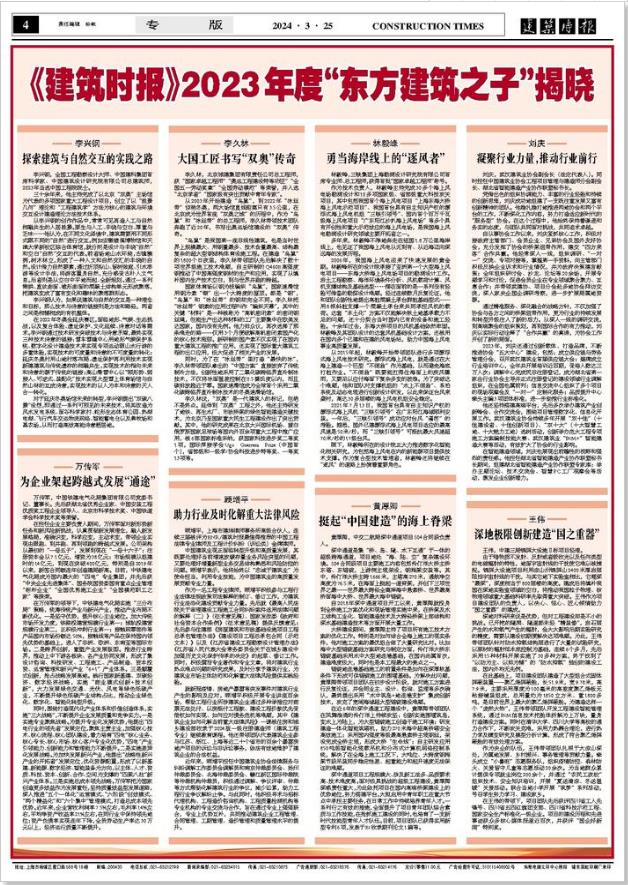 【行業動態】《建筑時報》2023年度“東方建筑之子”揭曉