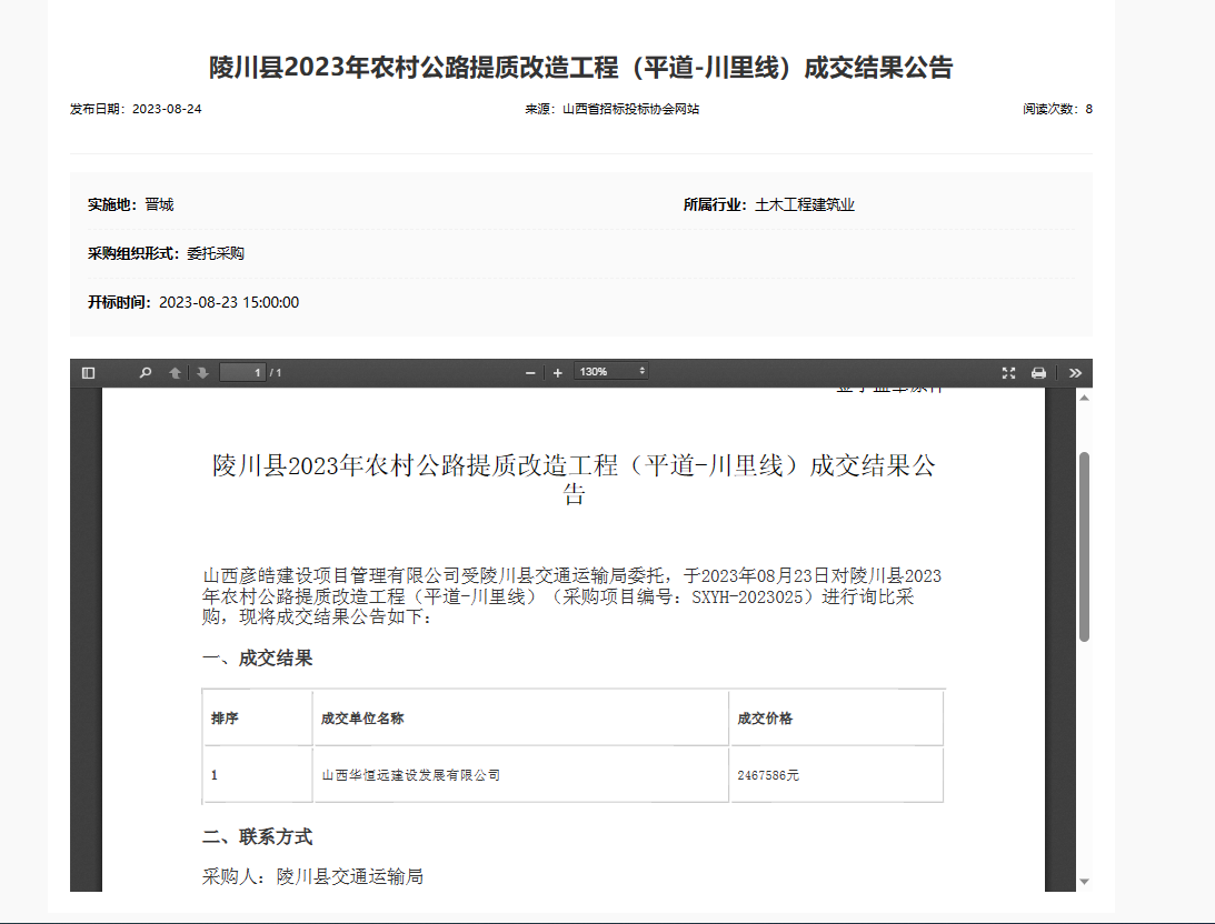 陵川縣2023年農村公路提質改造工程(平道-川里線)