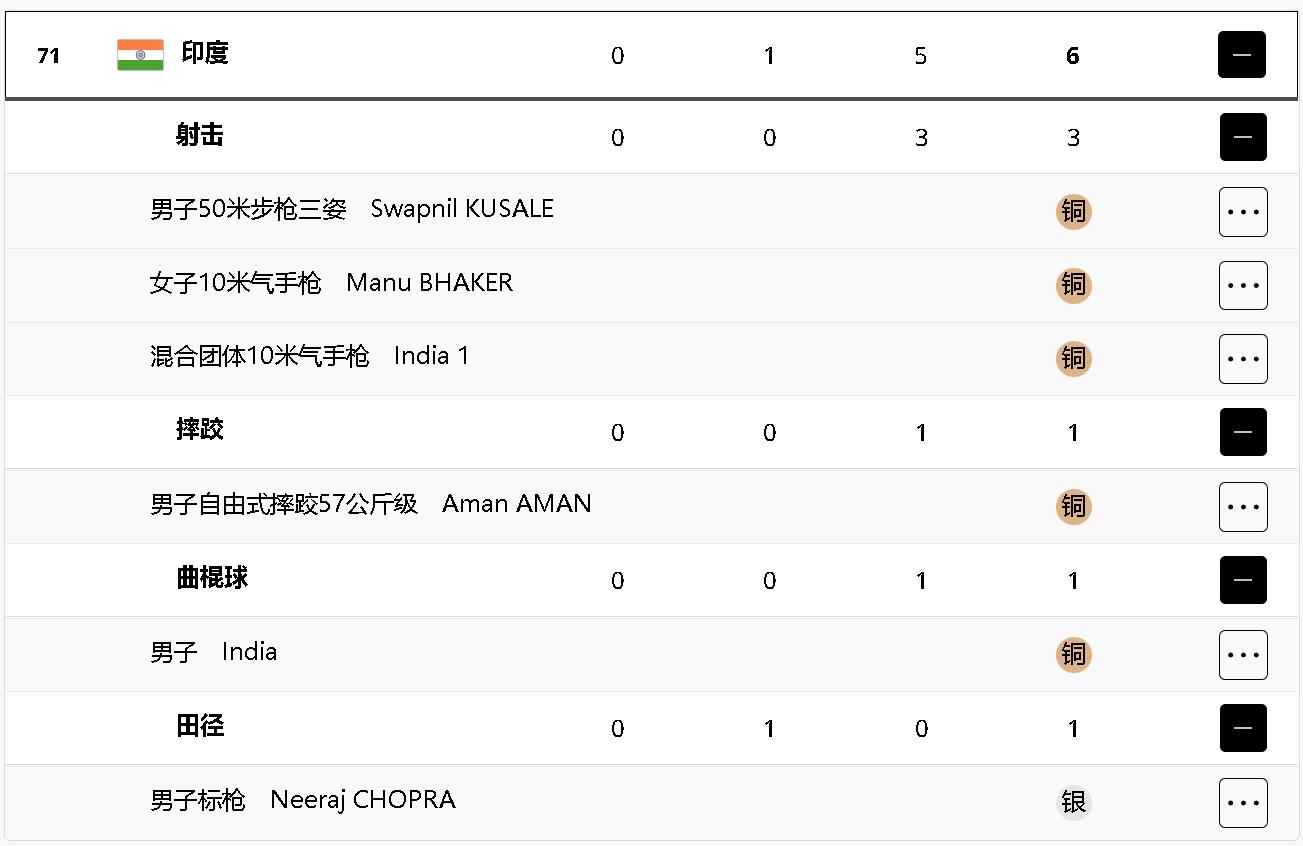 2024年巴黎奧運會至今,印度代表團未能斬獲一枚金牌,僅收獲3枚銅牌,均出自射擊項目。與體育強國中國、美國及法國相比,印度在奧運會上幾乎不被重視。