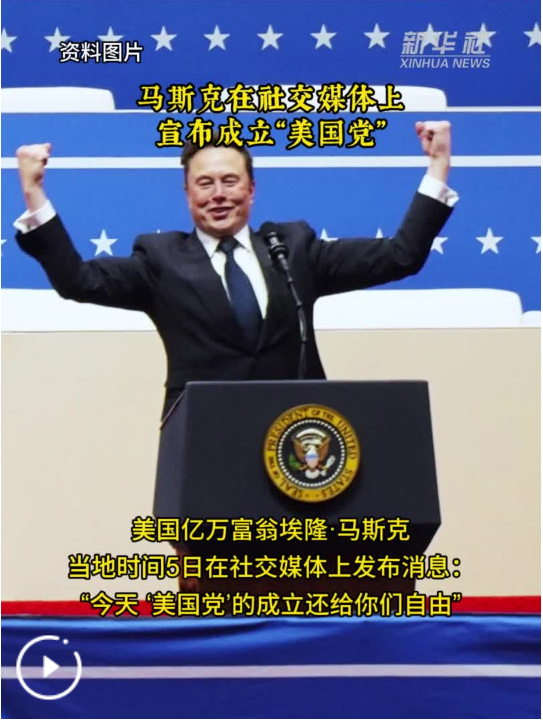 新華社洛杉磯7月5日電(記者黃恒)美國(guó)億萬(wàn)富翁埃隆·馬斯克當(dāng)?shù)貢r(shí)間5日在社交媒體上發(fā)布消息:“今天,‘美國(guó)黨’的成立還給你們自由?!?/span>