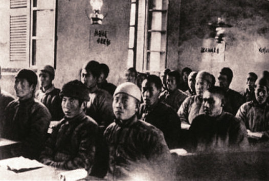 根據(jù)地軍民舉辦學(xué)習(xí)班,開展識(shí)字運(yùn)動(dòng),學(xué)習(xí)文化知識(shí)。