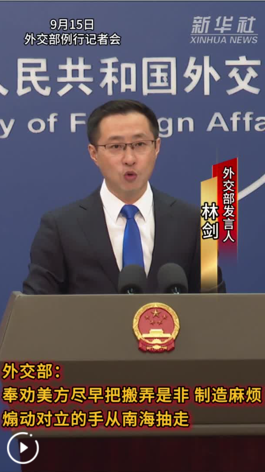 林劍:世界上只有一個中國,臺灣是中國領土不可分割的一部分,這是臺海的真正現狀。“臺獨”分裂和外部勢力縱容支持是臺海和平穩定的最大威脅。中方堅決反對任何形式的美臺官方往來和軍事勾連,堅定捍衛國家主權和領土完整。我們敦促美方切實恪守一個中國原則和中美三個聯合公報,停止向“臺獨”分裂勢力發出錯誤信號。無論民進黨當局如何炒作“大陸威脅”,渲染臺海緊張,拿著臺灣老百姓的血汗錢企圖“倚外謀獨”,都改變不了兩岸同屬一個中國的客觀事實,更阻擋不了中國終將統一、也必將統一的歷史大勢。