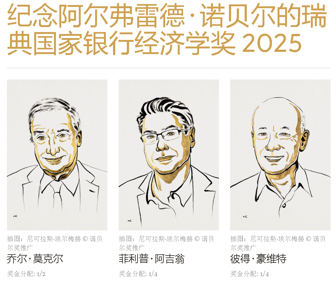 莫基爾獲得諾貝爾經濟學獎一半獎金,由于他“揭示了通過技術進步實現持續增長的先決條件”;另一半獎金由阿吉翁和豪伊特共同獲得,他們“提出了通過創造性破壞實現持續增長的理論”。