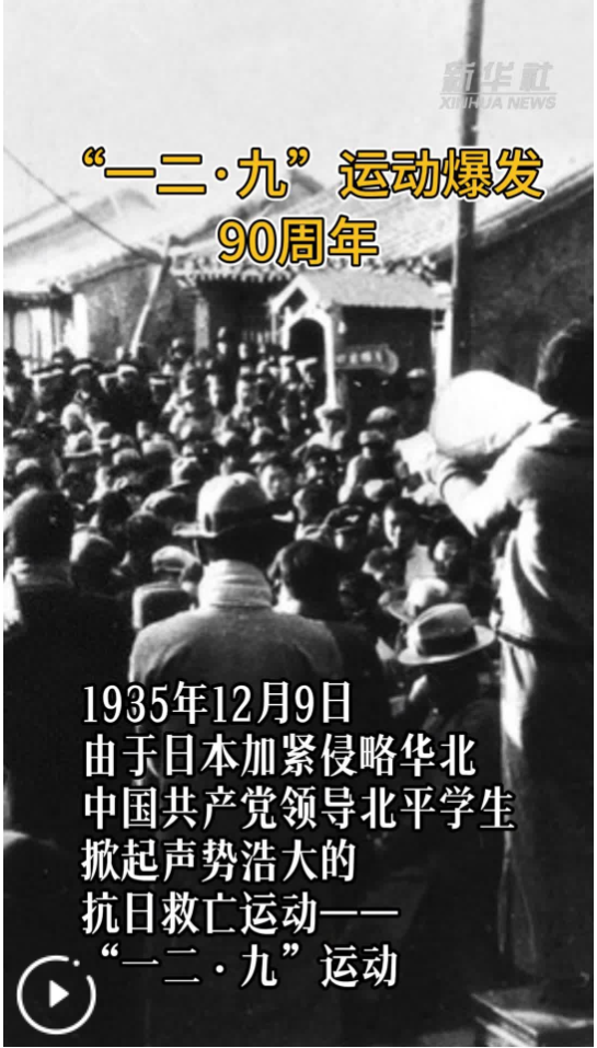 1935年12月9日,在中共北平臨時工委的領導下,多所高等院校和部分中學的數千名學生涌上北平街頭,舉行聲勢浩大的抗日救亡游行,“一二·九”運動爆發。