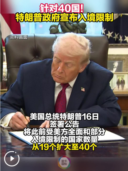 新華社華盛頓12月16日電(記者熊茂伶 楊伶)美國總統特朗普16日簽署公告,將此前受美方全面和部分入境限制的國家數量從19個擴大至40個。