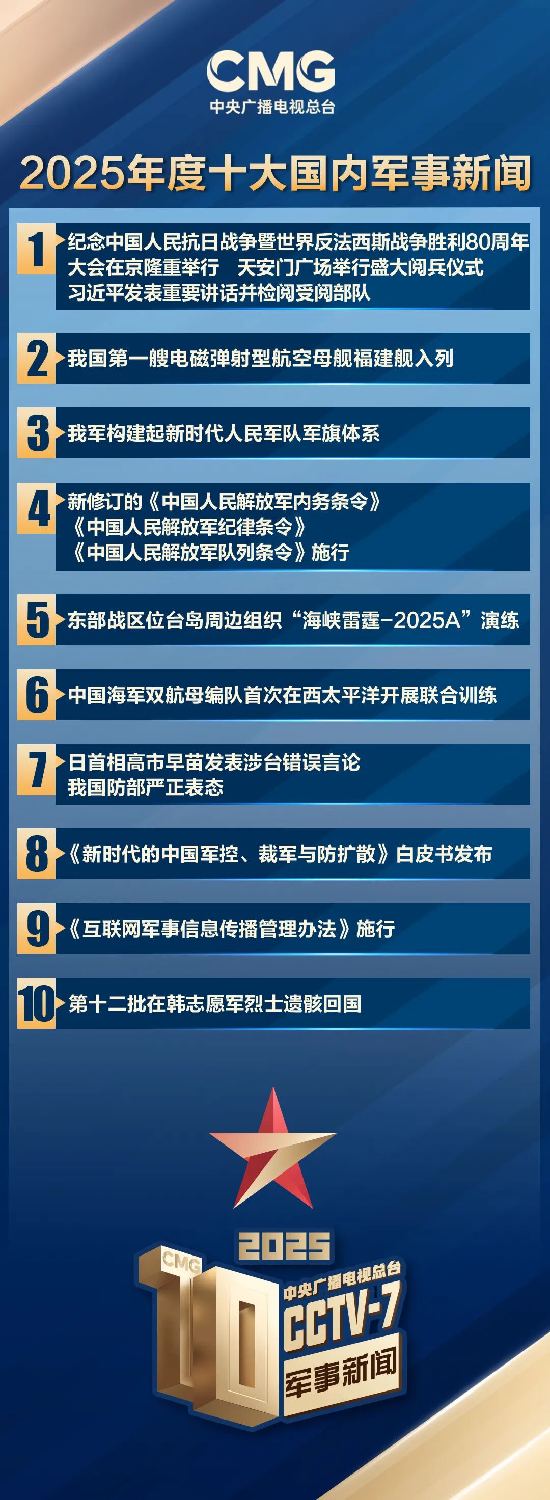 中央廣播電視總臺發布2025年度十大國內、十大國際軍事新聞 2025-12-26 14:16:49