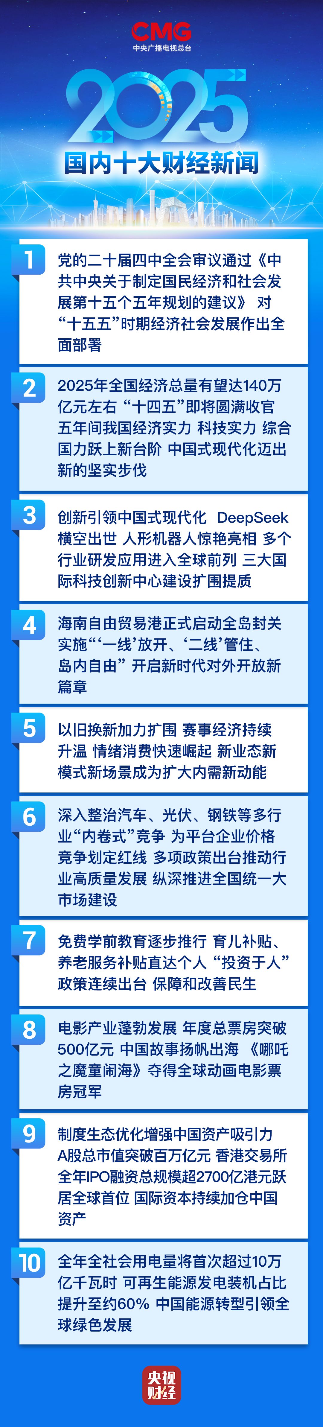 中央廣播電視總臺(tái)發(fā)布2025國(guó)內(nèi)、國(guó)際十大財(cái)經(jīng)新聞