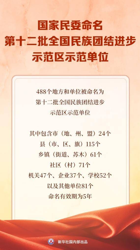 記者從1月29日在京召開的全國民委主任會(huì)議獲悉,488個(gè)地方和單位被命名為第十二批全國民族團(tuán)結(jié)進(jìn)步示范區(qū)示范單位。